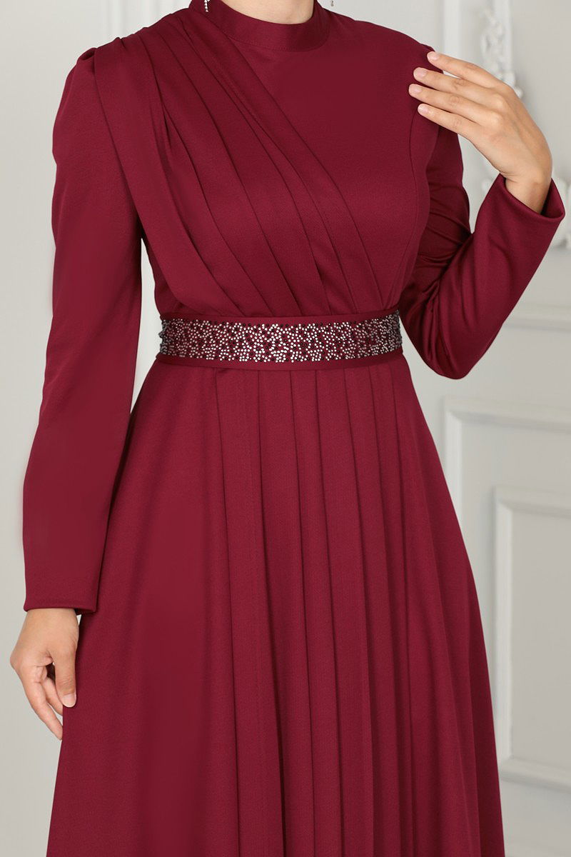 المنتج لديه ياقة دائرية. غير مبطنة. المنتج به سحاب في جزء من الخلف. الحزام متضمن، ،يمكن استخدامها حسب الرغبة يتم لصق الحجارة. قد يكون هناك اختلاف في الدرجة اللونية في المنتج بسبب التقاط الصور الفوتوغرافية.