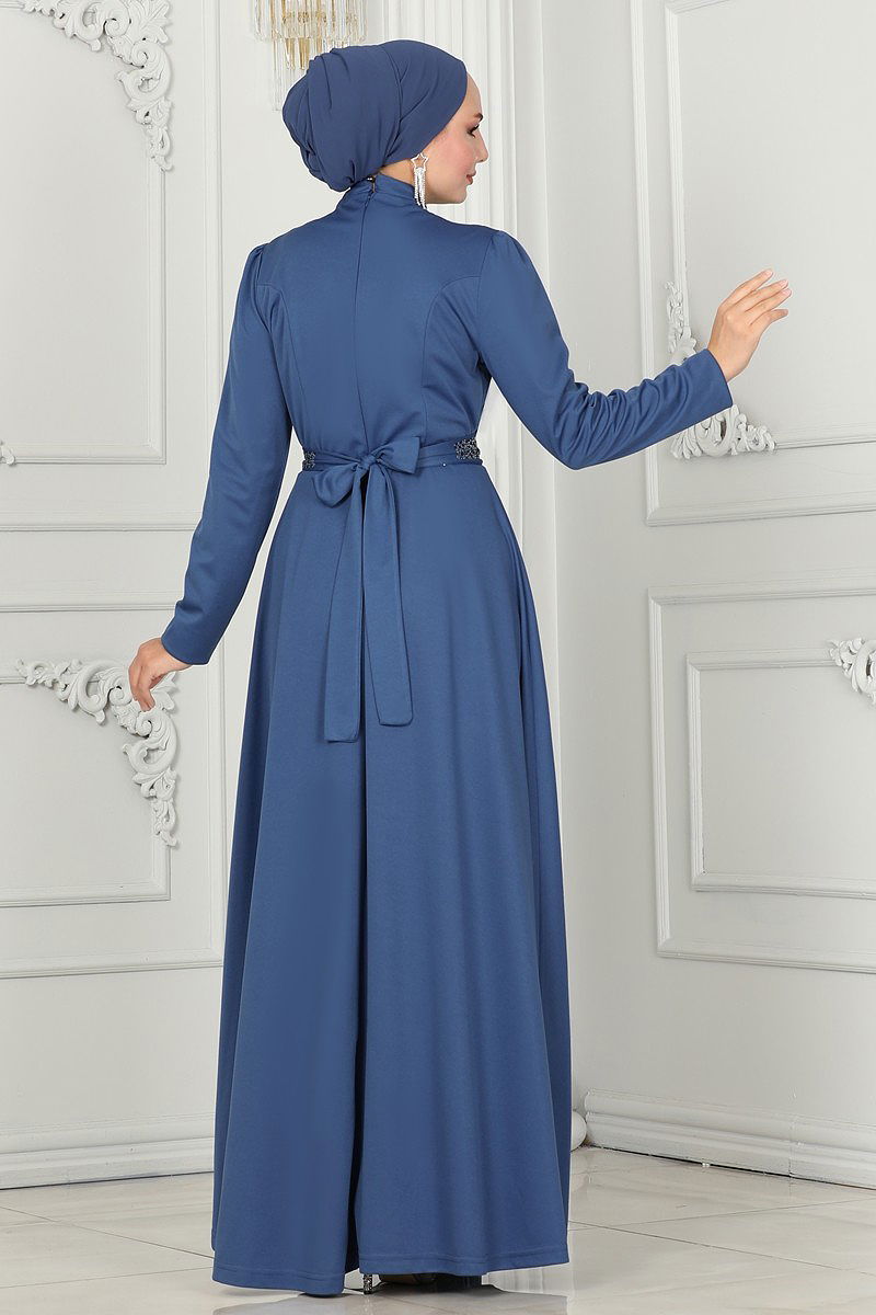 Stone-Embellished Belt Abaya is a model of hijab clothing. It can be used in all seasons. Only dry cleaning should be done. It is made of first-class Knitted Dabıl fabric. The product has a bicycle collar. It is unlined. The product has a back zip.(The product on the model is size 38.)Height: 160 cm, Chest: 86 cm, Waist: 68 cm, Hip: 95 cm, Weight: 52 kg. The ends of the belt are sewn to prevent fluttering, and the middle part is left empty (seamless). The belt is included in the product and can be optionally used. Stones are glued.