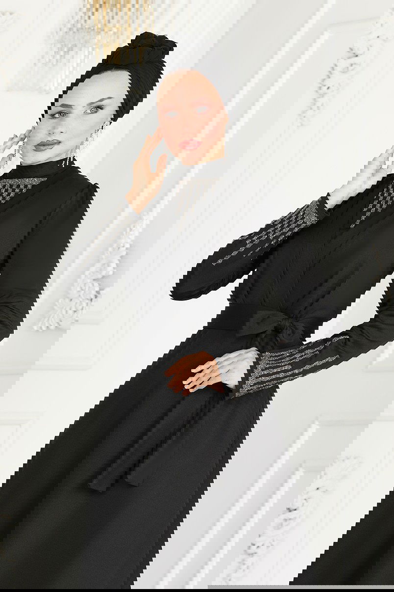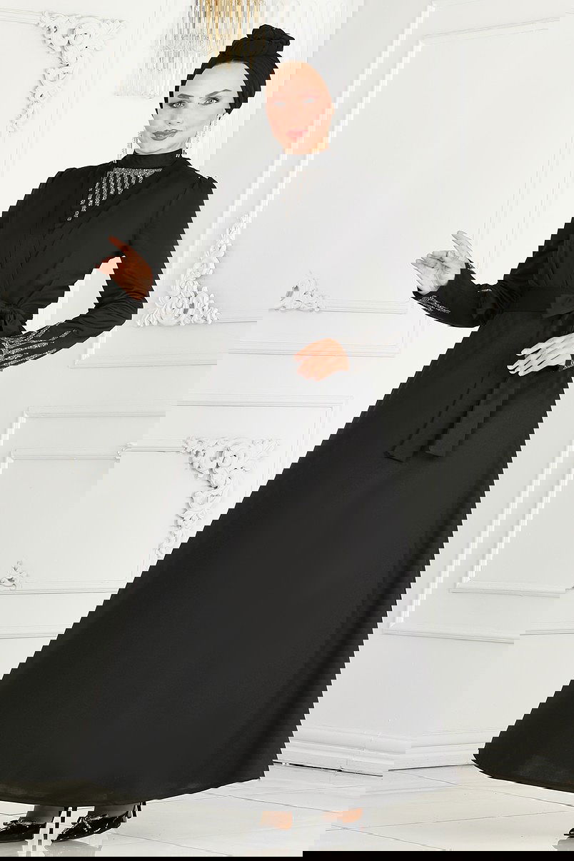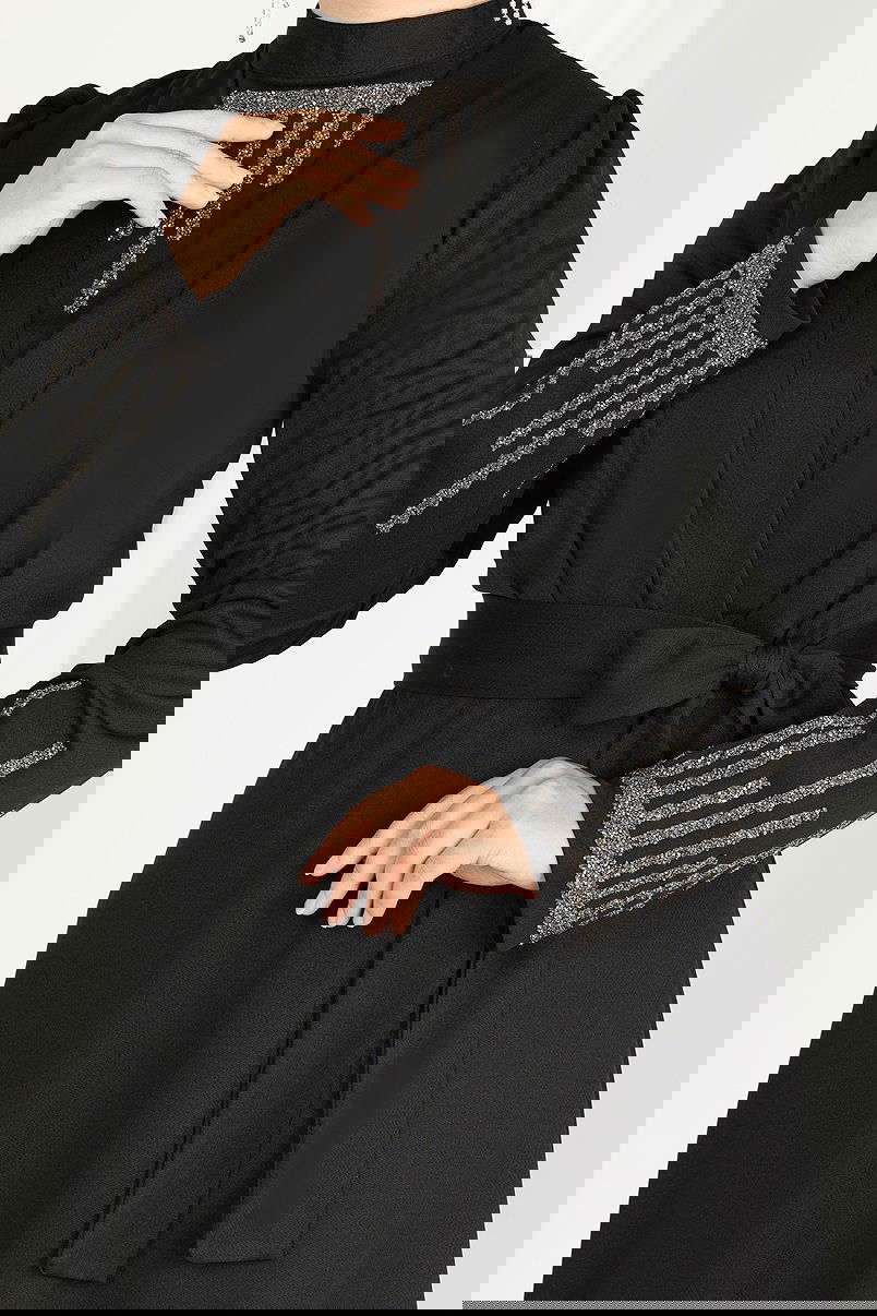 المنتج لديه ياقة نصف بيضوية. غير مبطنة.. المنتج به سحاب في جزء من الخلف. الحزام متضمن، ،يمكن استخدامها حسب الرغبة يتم لصق الحجارة. قد يكون هناك اختلاف في الدرجة اللونية في المنتج بسبب التقاط الصور الفوتوغرافية.