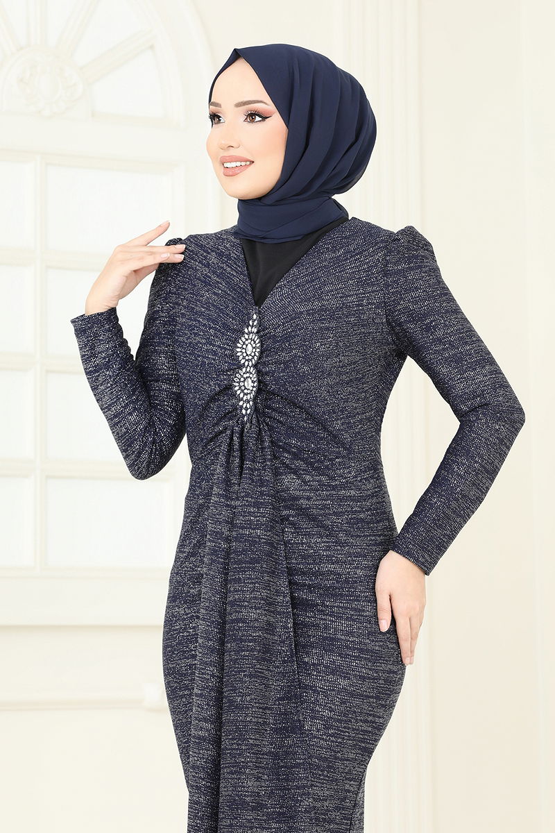 This elegant Flounced Skirt Evening Dress is perfect for maintaining your elegance throughout all seasons in any special event. Its maternity design, made from glittery lycra fabric, can only be dry-cleaned. The V-neck and zipper at the back make it easy to wear. The skirt’s flounce detail along with a slit offers a modern and sophisticated look. Its lining-free structure provides a light and comfortable wear. This dress is ideal for completing your flawless appearance.