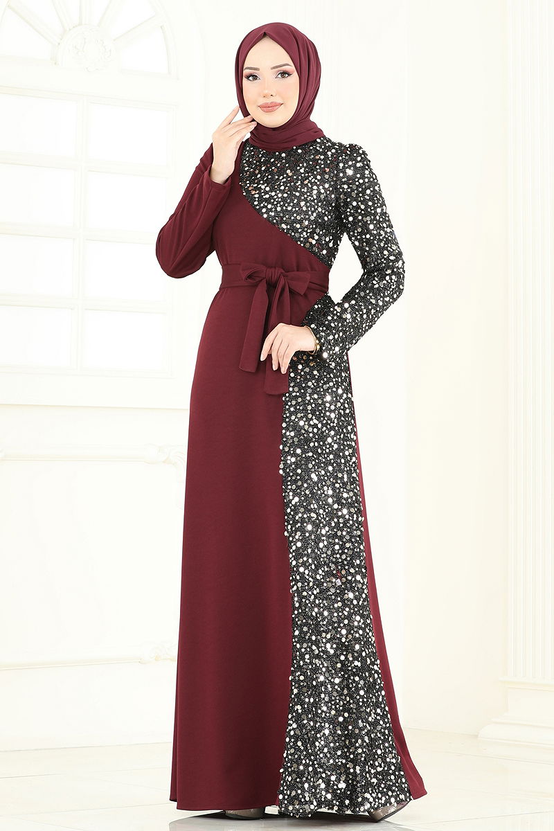 Product Feature : It is a new season hijab fashion product. The product has a Cycling collar. Unlined. The product has a zipper at the from the back part. The product has a stitched waistband. Sequin sequin detail is sewn. Belt included, optional not available. There may be a tonal difference in the product due to concept photo shoots.