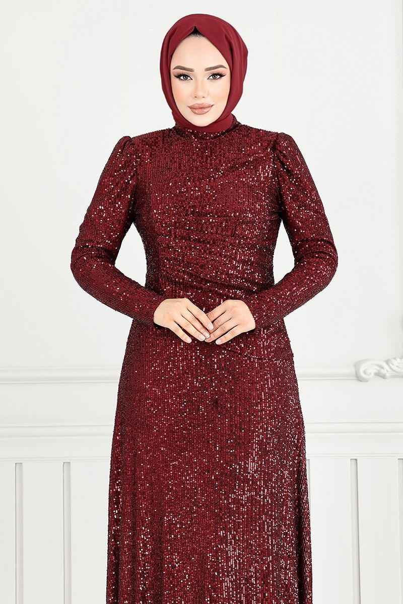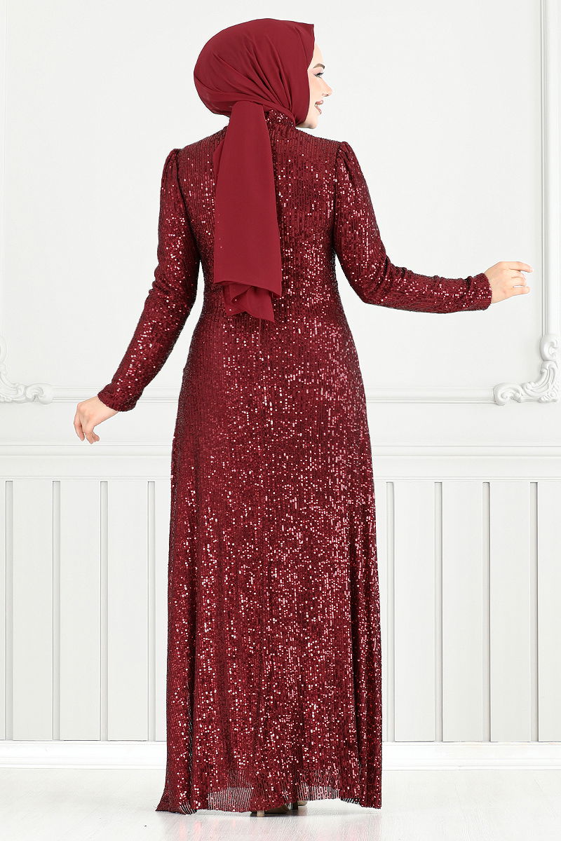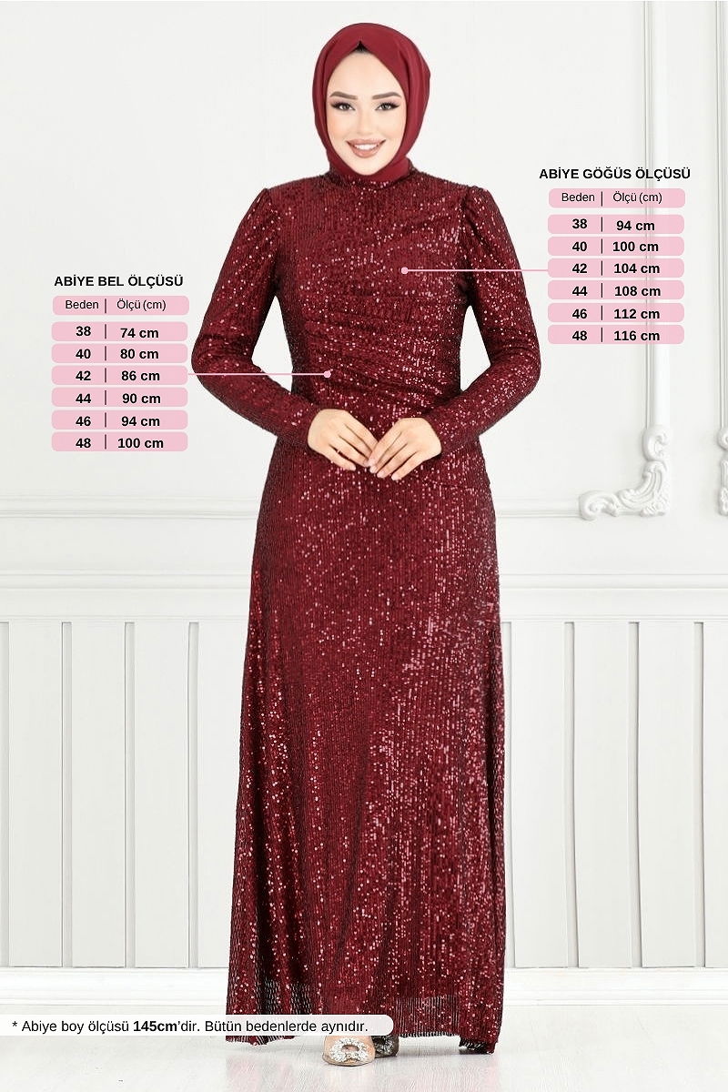 Elegant and sophisticated, the Sequin Embellished Evening Dress is perfect for your special occasions. Suitable for all seasons, this modest dress should only be dry cleaned. Dazzling with its sequin details, the dress offers comfort with its high collar and lined design. It comes with a back zipper, and the product shown is size 38.