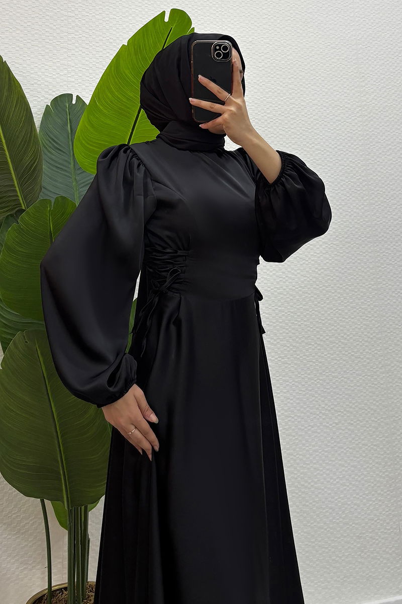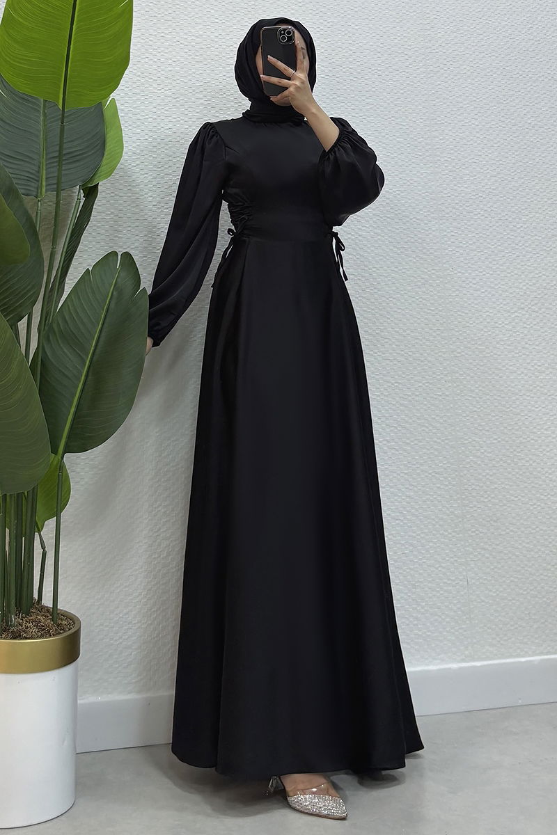 Combining elegance and comfort, the 'Drawstring Waist Satin Gown' is a perfect choice for modest wear throughout the year. Crafted from luxurious satin fabric, this dress features a bike collar and a zipped back for a contemporary look. It is unlined, with drawstring waist details to accentuate a feminine silhouette. The gown has elastic cuffs and should be only dry cleaned. An ideal choice to feel special!