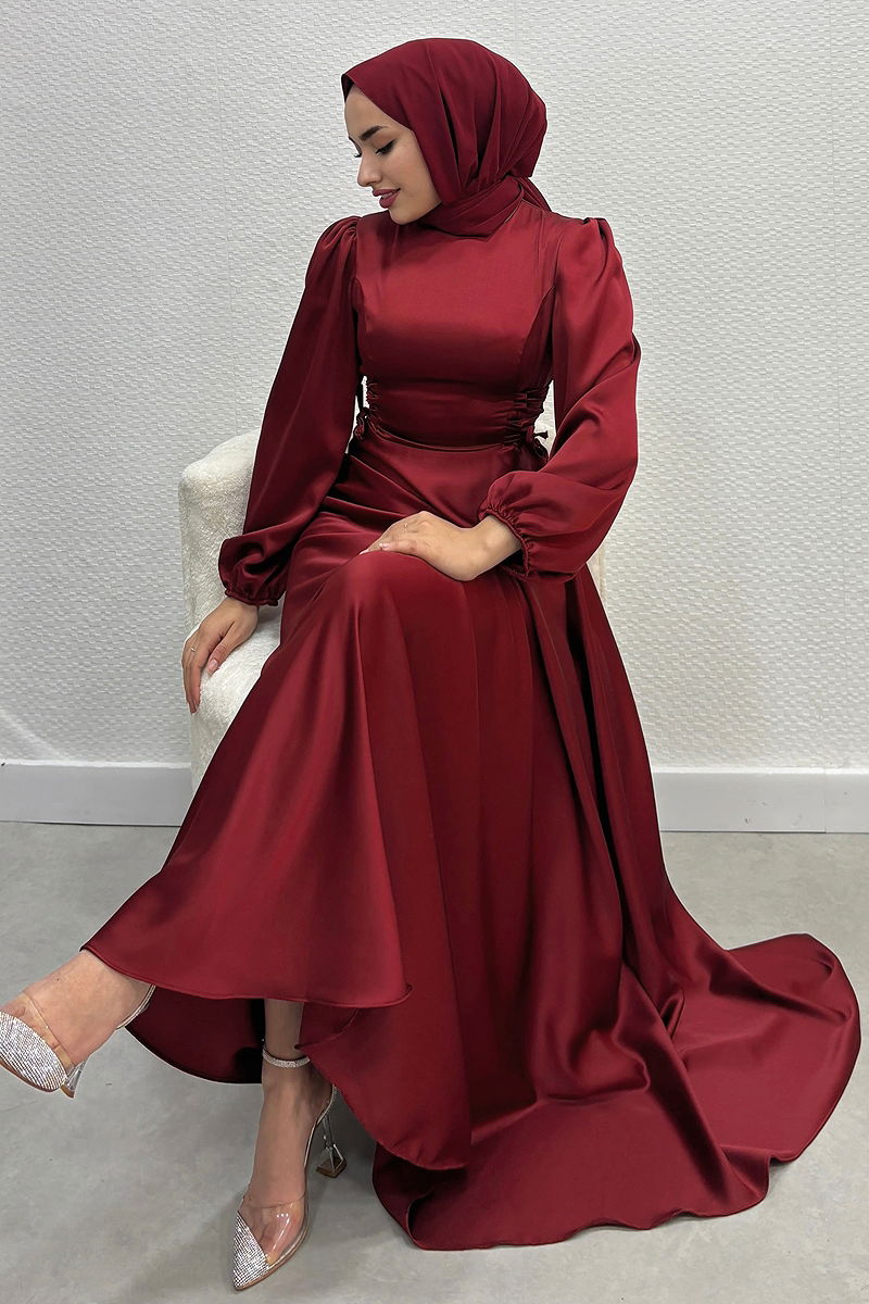 Combining elegance and comfort, the 'Drawstring Waist Satin Gown' is a perfect choice for modest wear throughout the year. Crafted from luxurious satin fabric, this dress features a bike collar and a zipped back for a contemporary look. It is unlined, with drawstring waist details to accentuate a feminine silhouette. The gown has elastic cuffs and should be only dry cleaned. An ideal choice to feel special!