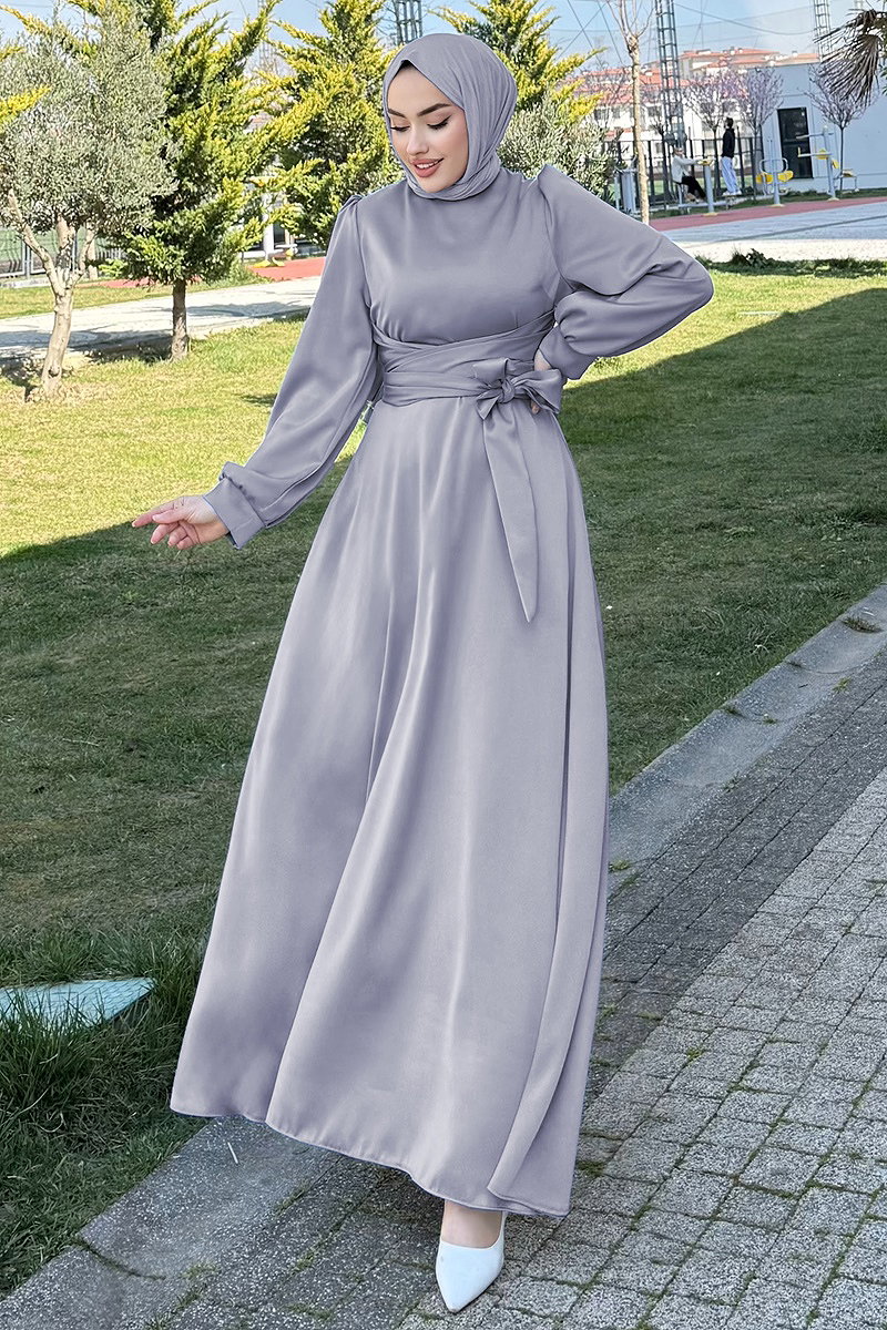 The Cross-Belted Waist Gown is an ideal modest dress that combines elegance and comfort for all seasons. Its smooth satin fabric and subtle sheen ensure you dazzle on special occasions. The upright collar and zipper at the back make it easy to wear, while the unlined design provides additional comfort. The stitched belt at the front adds a unique aesthetic touch. This garment should only be dry cleaned to maintain its quality over time. The product size shown on the model is 38, but other sizes are also available.