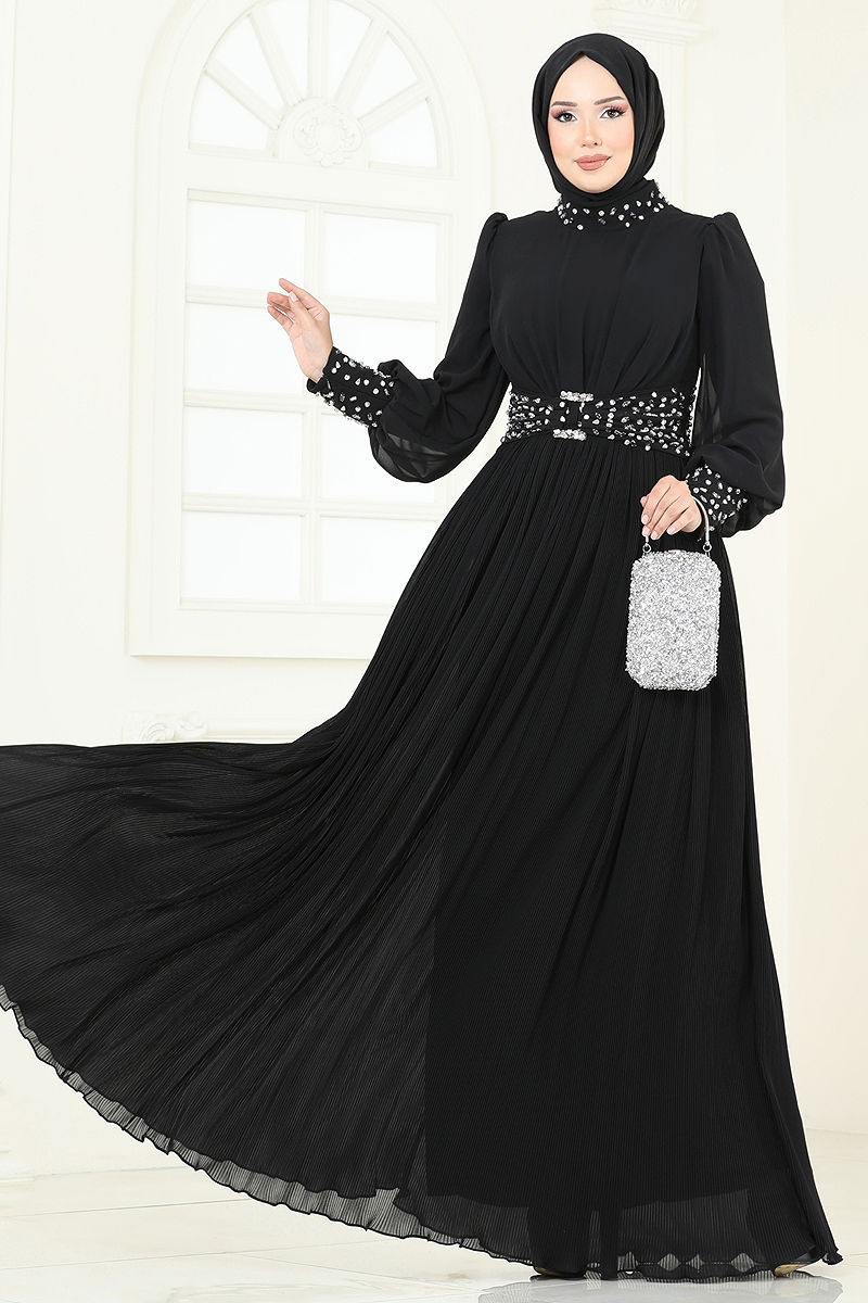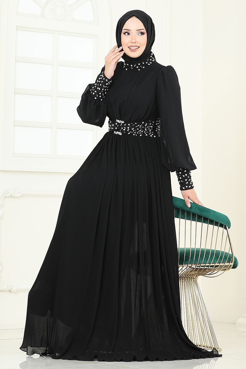 Product Feature : It is a new season hijab fashion product. It has a back zipper and a button. The product has a Half Judge collar. It is lined. The stones are glued. The product includes a breast pad. The cuff has an active zipper. There may be a tonal difference in the product due to concept photo shoots.