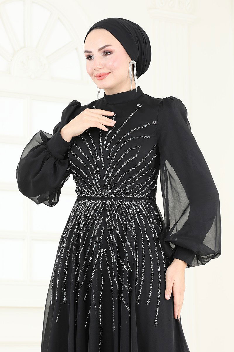 SUAL Stone Detailed Janjan Evening Dress is a seasonal hijab product that can be used throughout the year. Dry cleaning is recommended and it is made of janjan chiffon fabric. The product has a dominant collar and is lined. It has a zipper on the back. (The product on the model is size 38.) Height: 160 cm, Chest: 86 cm, Waist: 68 cm, Hip: 95 cm, Weight: 55 kg. The stones are pasted and cuff buttons are active.