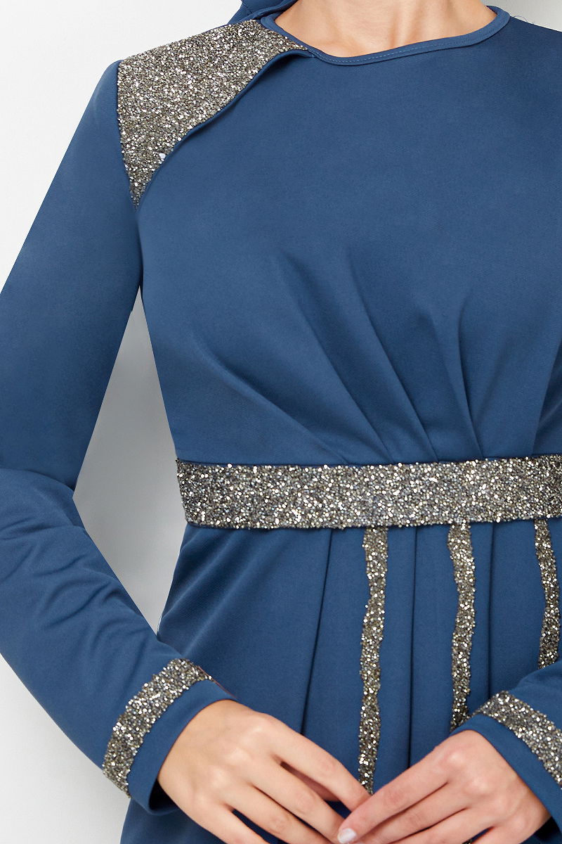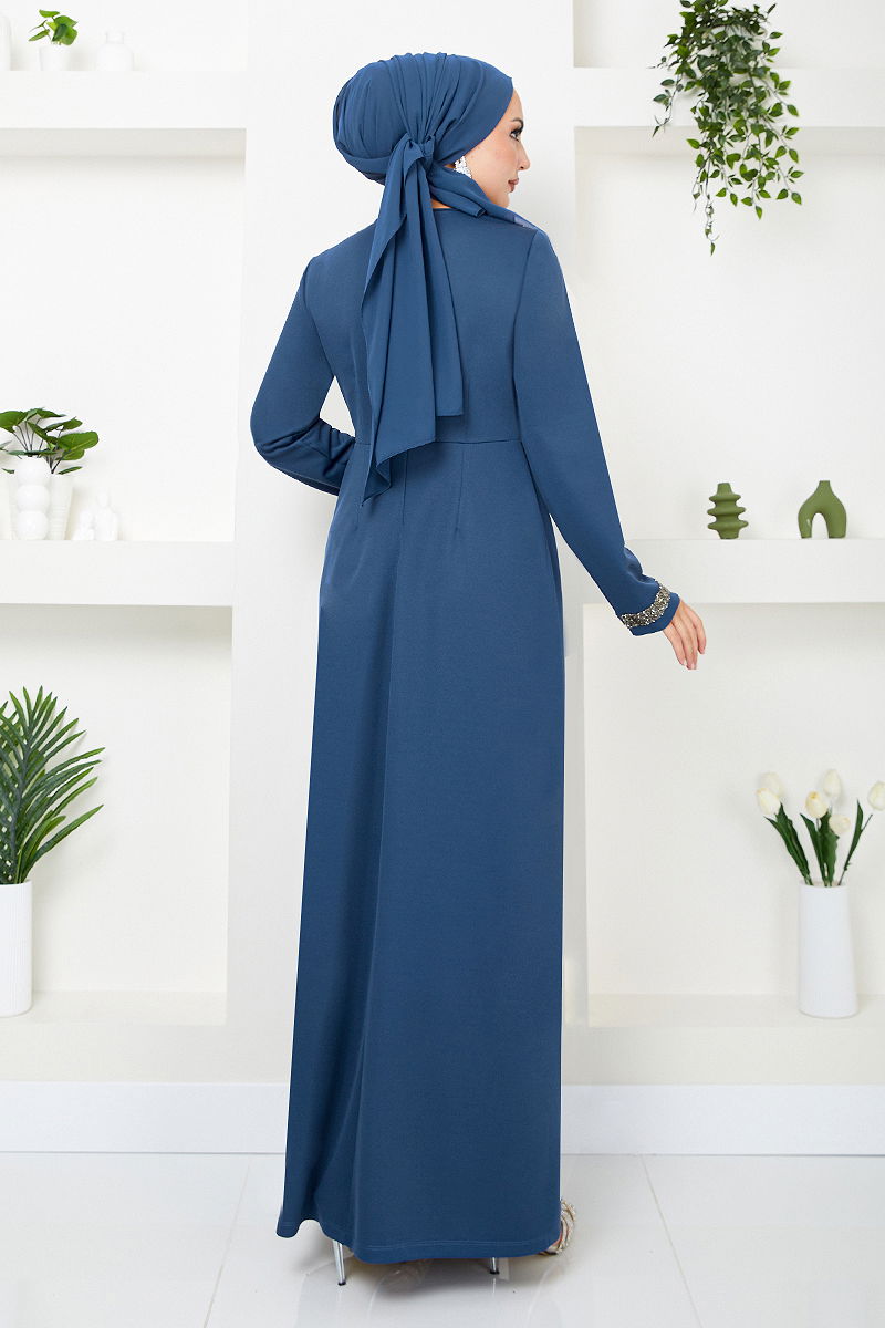 Belt Stone Embellished Evening Dress is a model of hijab clothing. It can be used in all four seasons. Dry cleaning only. It is made of first class Knit Dabıl fabric. The product has a Bicycle neck. Unlined. The product has a back zippered. (The product on the model is 38 size) Stones are not glued.
