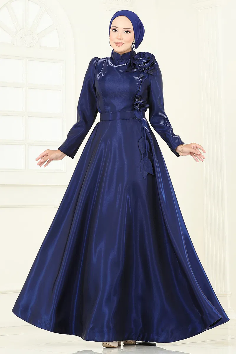 SUAL Rose-Accessory Organza Evening Dress, an elegant and splendid choice! This hijab evening dress, which can be comfortably worn throughout the four seasons, requires dry cleaning only. Masterfully crafted from organza fabric, this dress features a half high-collar design and is lined. It can be easily worn and taken off with a zipper detail at the back. Presented in a standard size 38, this special design has a chic seam detail at the waist and includes optional accessory and belt, which can add an elegant touch to your outfit, yet can be omitted if desired.