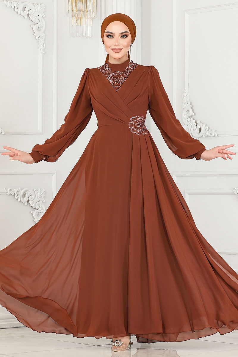 Product Feature : It is a new season hijab fashion product. The product has a Half Judge collar. It is lined. The product has a zipper at the from the back part. The stones are glued. There may be a tonal difference in the product due to concept photo shoots.