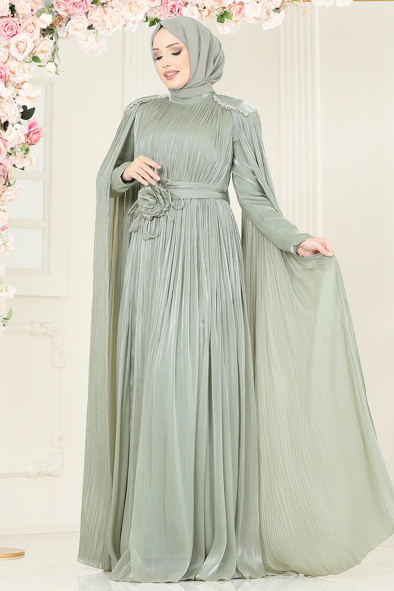 SUAL Floral Accessorized Organza Evening Dress is an elegant modest wear appropriate for all seasons. Made from high-quality organza fabric, this gown features a demure mandarin collar design and is lined for added comfort. The dress comes with a zip at the back, and includes a detachable flower accessory and belt that add a touch of glamour to your look. Only dry cleaning is recommended for this exquisite piece, making it perfect for every special occasion.