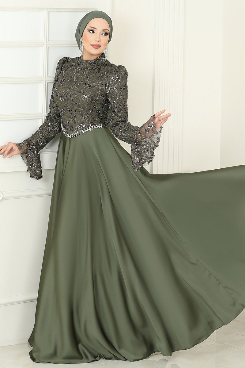 ميزة النسيج : مصنوع من قماش ساتان مطرز بالخرز من الدرجة الأولى.