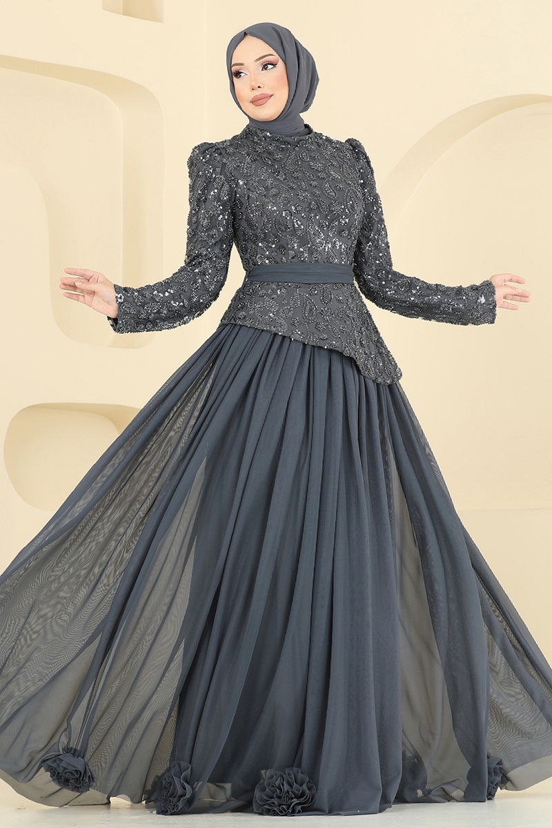 Product Feature : It is a new season hijab fashion product. The product has a Half Judge collar. It is lined. The product has a zipper at the from the back part. The product includes a breast pad. Details are sewn. The stones are glued. Belt included, optional not available. The skirt waist is elastic. There may be a tonal difference in the product due to concept photo shoots.