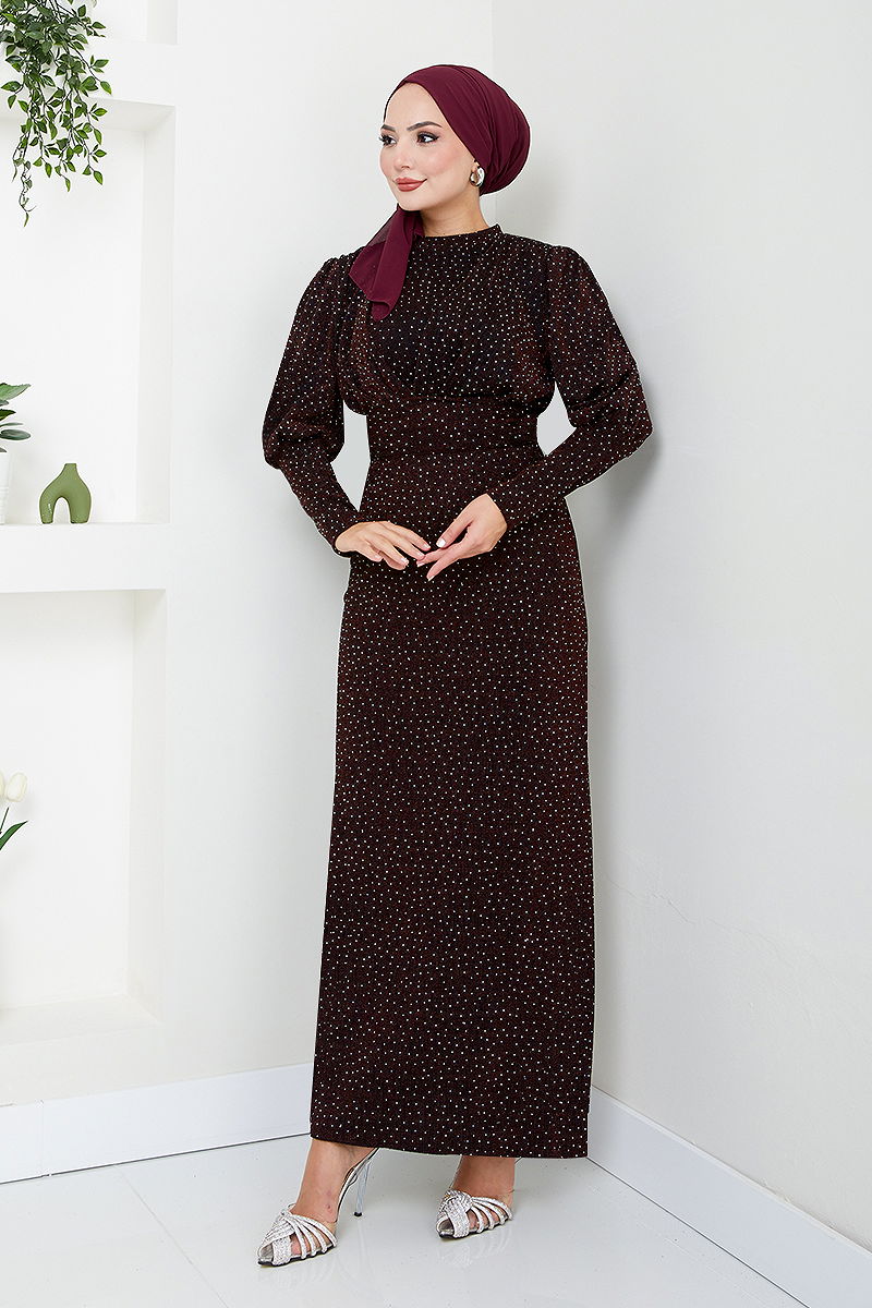 المنتج لديه ياقة نصف بيضوية. غير مبطنة.. المنتج به سحاب في جزء من الخلف. الحزام متضمن، ،يمكن استخدامها حسب الرغبة يتم لصق الحجارة. أكمام البالون. قد يكون هناك اختلاف في الدرجة اللونية في المنتج بسبب التقاط الصور الفوتوغرافية.