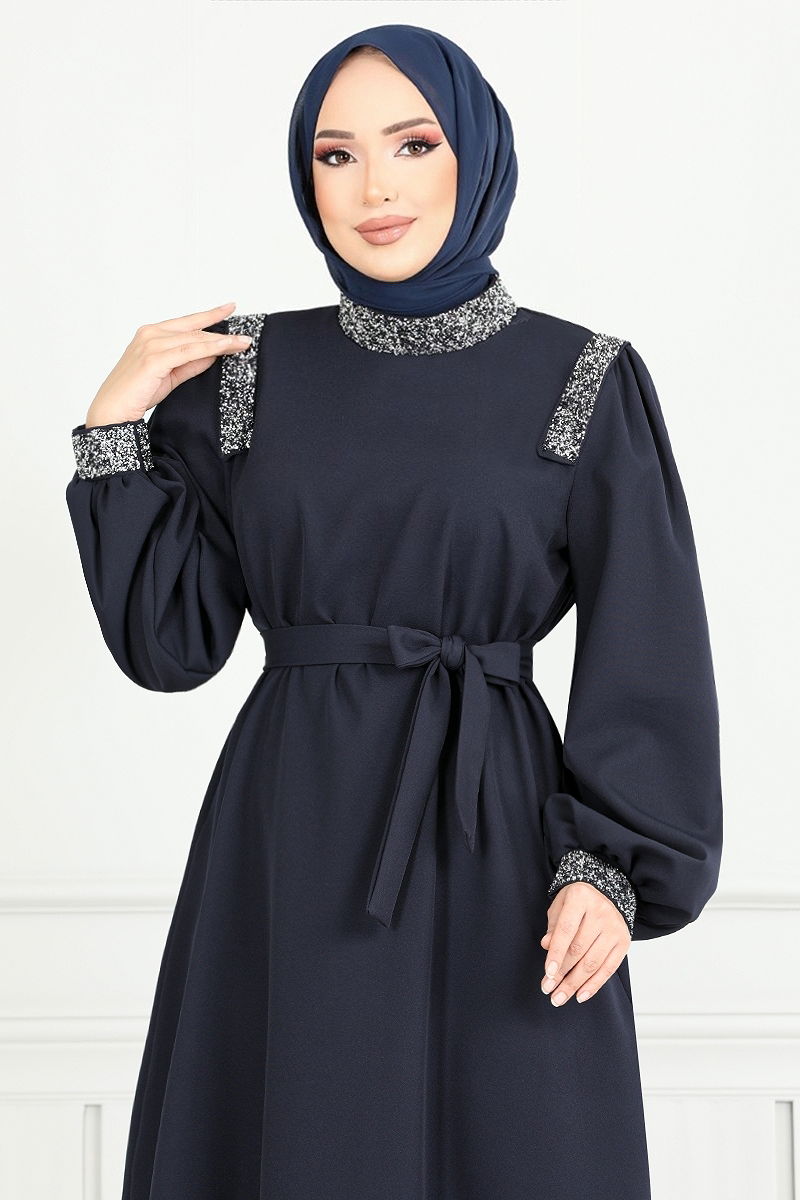 يوجد زر يمكن استخدامه من الخلف. المنتج لديه ياقة بيضوية. غير مبطنة. يتم لصق الحجارة. الحزام متضمن، ،يمكن استخدامها حسب الرغبة قد يكون هناك اختلاف في الدرجة اللونية في المنتج بسبب التقاط الصور الفوتوغرافية.