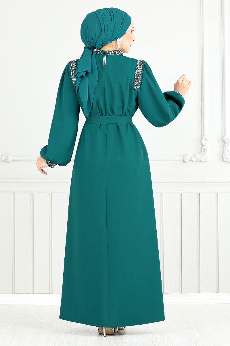 يوجد زر يمكن استخدامه من الخلف. المنتج لديه ياقة بيضوية. غير مبطنة. يتم لصق الحجارة. الحزام متضمن، ،يمكن استخدامها حسب الرغبة قد يكون هناك اختلاف في الدرجة اللونية في المنتج بسبب التقاط الصور الفوتوغرافية.