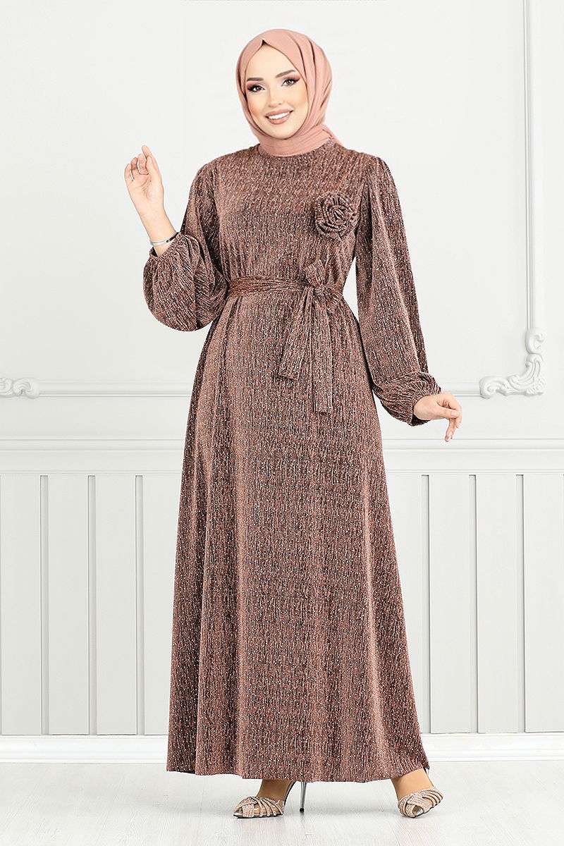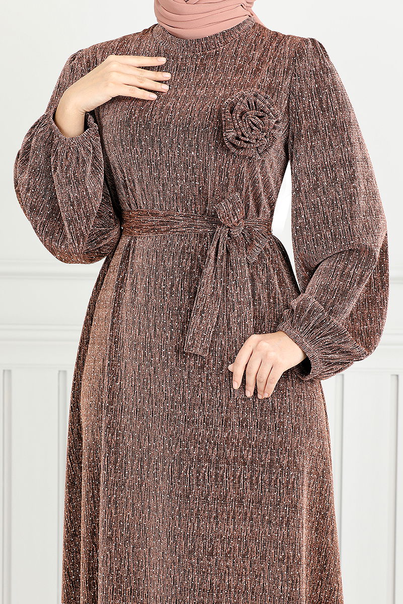 يتم ارتداء الثوب الداخلي فوق الرأس. المنتج لديه ياقة دائرية. غير مبطنة. يتم خياطة البروش على المنتج. الحزام متضمن، ،يمكن استخدامها حسب الرغبة السوار مطاطي. قد يكون هناك اختلاف في الدرجة اللونية في المنتج بسبب التقاط الصور الفوتوغرافية.