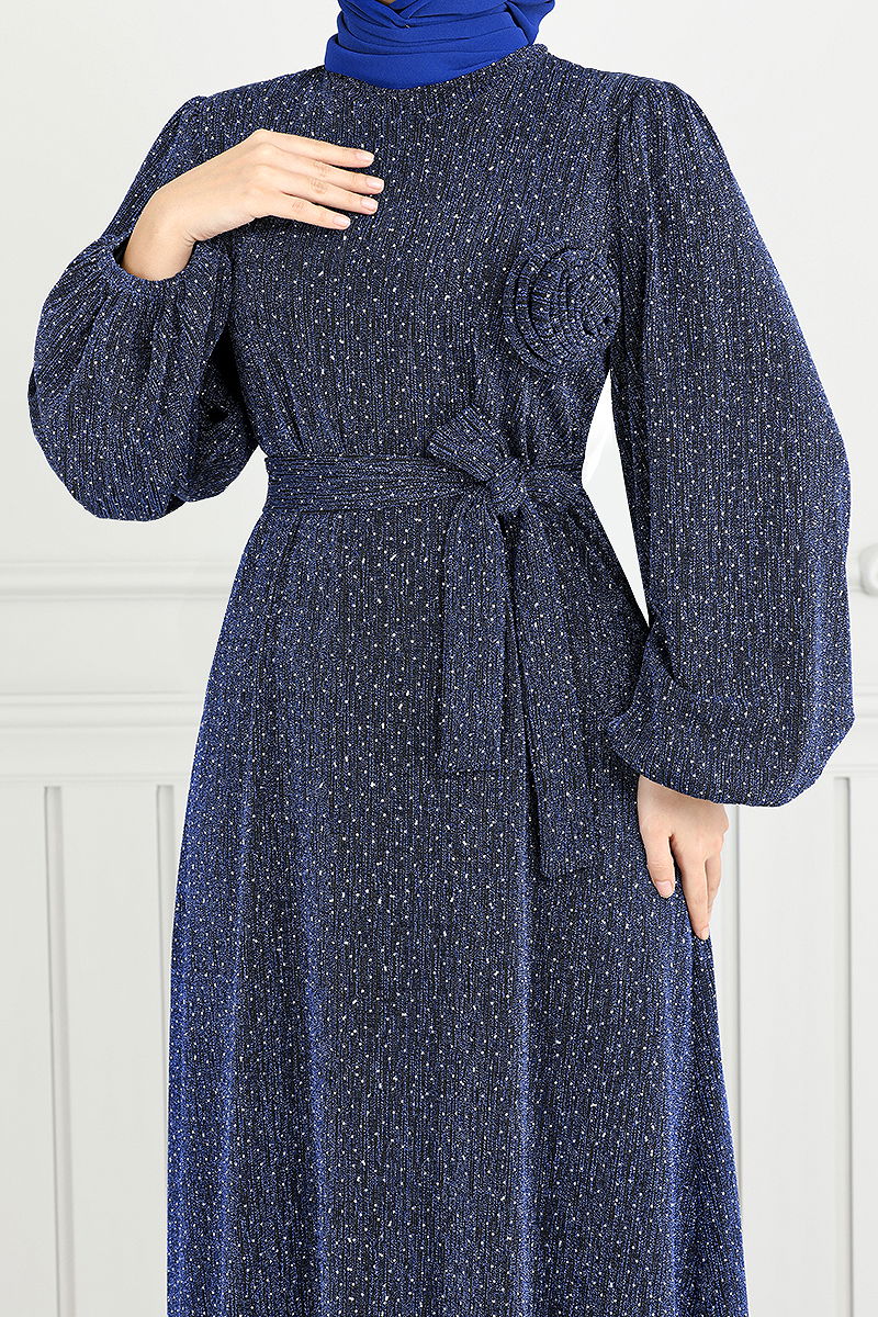 The new season's favorite, Sparkly Hijab Evening Dress, allows you to carry elegance with you on your special days with its eye-catching design. Suitable for wearing throughout the Four Seasons, this special product is made of sparkly Lycra fabric, offering comfort and freedom of movement. Its mock neck and elasticated cuffs add a modern touch, while the brooch detail offers an elegant look. The belt can be adjusted according to your style. This evening dress, which should be cleaned with dry cleaning only, will become an indispensable part of your wardrobe.