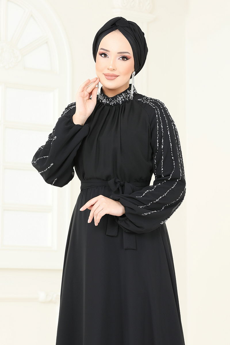 المنتج لديه ياقة بيضوية. مبطنة. المنتج به سحاب في جزء من الخلف. يتم لصق الحجارة. المنتج يحتوي على حزام خصر مُخاط. الحزام متضمن، ،يمكن استخدامها حسب الرغبة السوار مطاطي. قد يكون هناك اختلاف في الدرجة اللونية في المنتج بسبب التقاط الصور الفوتوغرافية.