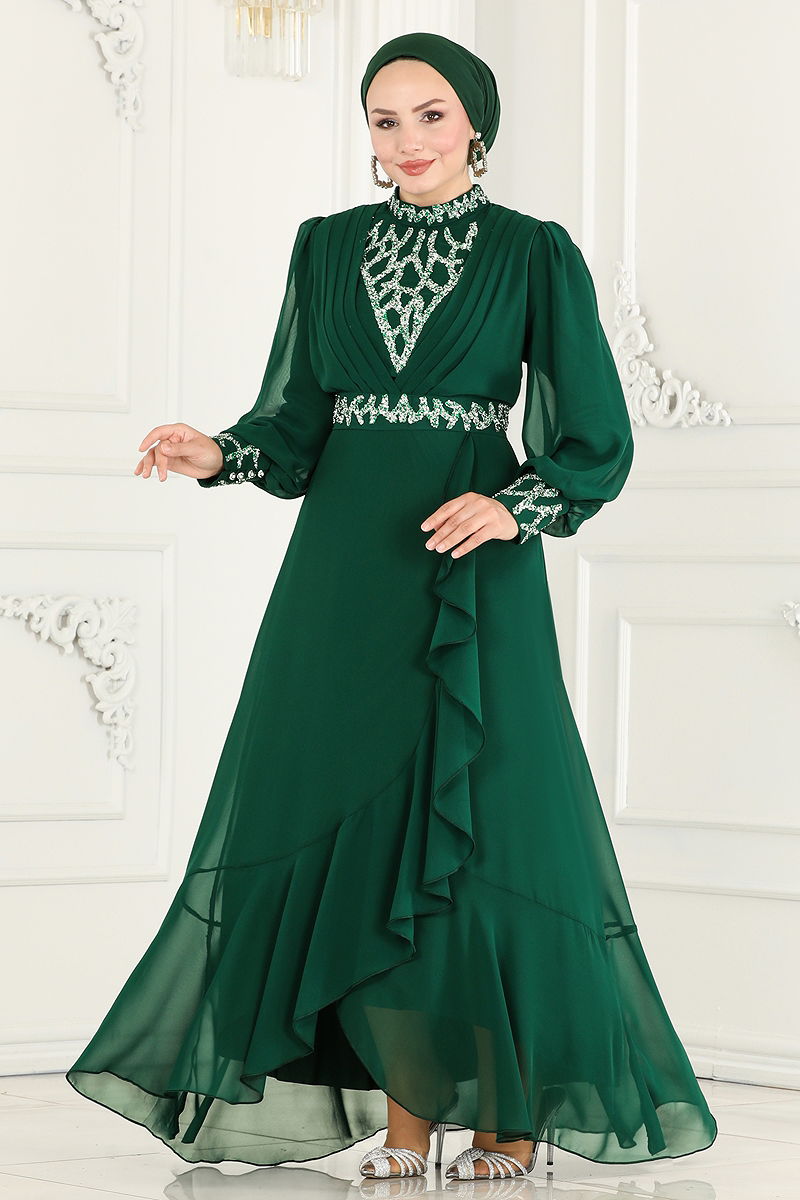Product Feature : It is a new season hijab fashion product. The product has a Half Judge collar. It is lined.. The product has a zipper at the from the back part. The stones are glued. Belt included, optional not available. Cuff buttons are active. There may be a tonal difference in the product due to concept photo shoots.