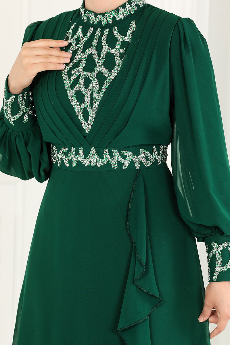 المنتج لديه ياقة نصف بيضوية. مبطنة.. المنتج به سحاب في جزء من الخلف. يتم لصق الحجارة. الحزام متضمن، ،يمكن استخدامها حسب الرغبة أزرار الكفة نشطة. قد يكون هناك اختلاف في الدرجة اللونية في المنتج بسبب التقاط الصور الفوتوغرافية.