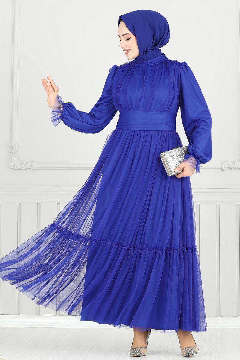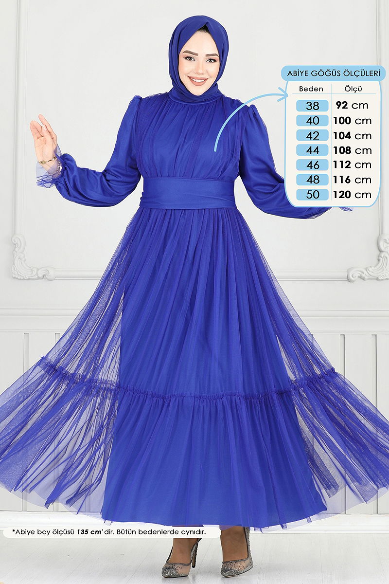 Elegance and comfort converge in the Elastic Cuffed Tulle Evening Gown, a perfect choice for any season. Made from fine tulle fabric, this modest gown features a lined design with a back zipper for convenience. The stand-up collar adds a touch of sophistication while the elastic waist and cuffs ensure a perfect fit. The included belt, designed to prevent bunching, is removable, allowing you to customize the look for your special occasions. Embrace exquisite elegance with this stunning gown.
