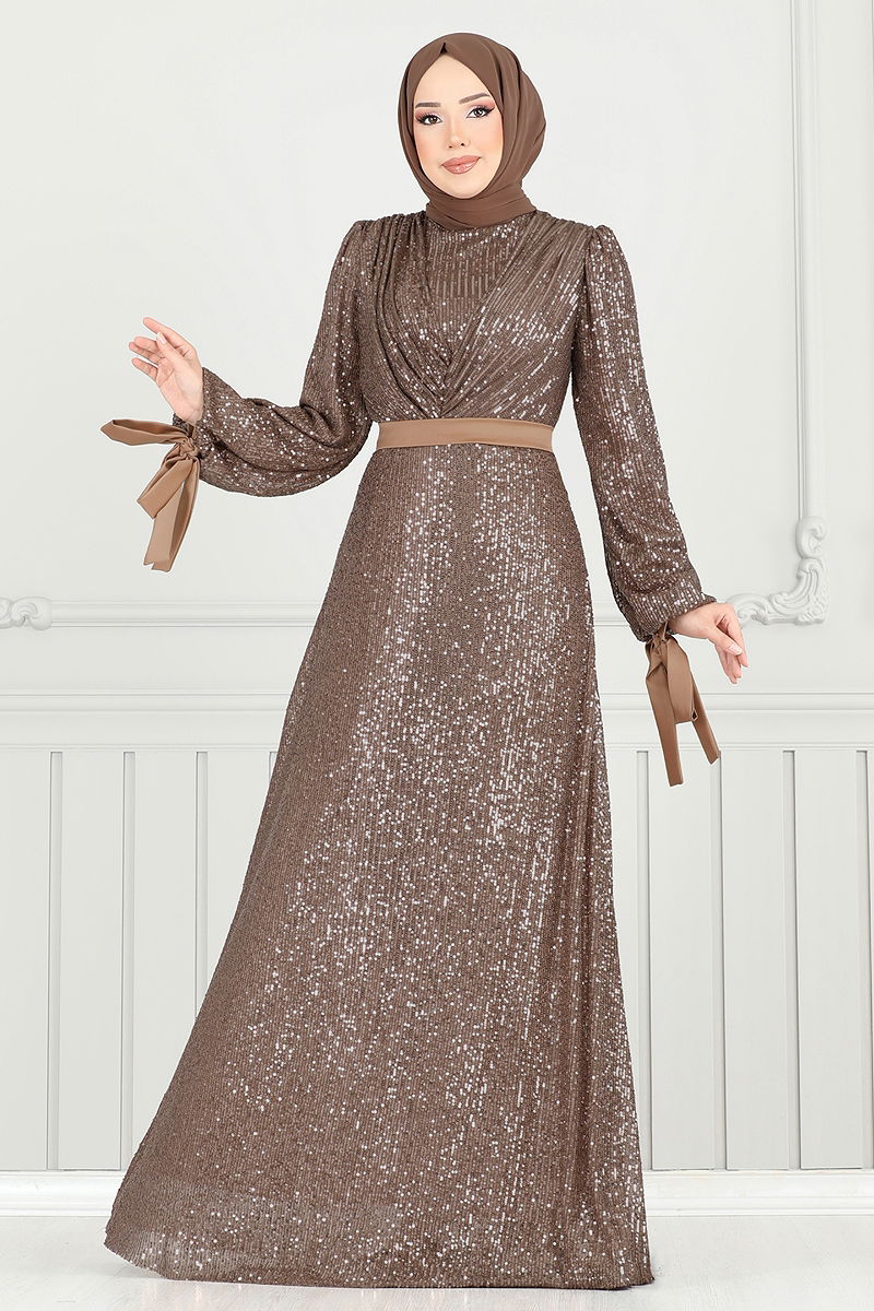 يوجد زر يمكن استخدامه من الخلف. المنتج لديه ياقة بيضوية. مبطنة. المنتج به سحاب في جزء من الخلف. تفاصيل الترتر اللامع تم خياطته المنتج يحتوي على حزام خصر مُخاط. الحزام متضمن، ،يمكن استخدامها حسب الرغبة مع حزام بأربطة. قد يكون هناك اختلاف في الدرجة اللونية في المنتج بسبب التقاط الصور الفوتوغرافية.