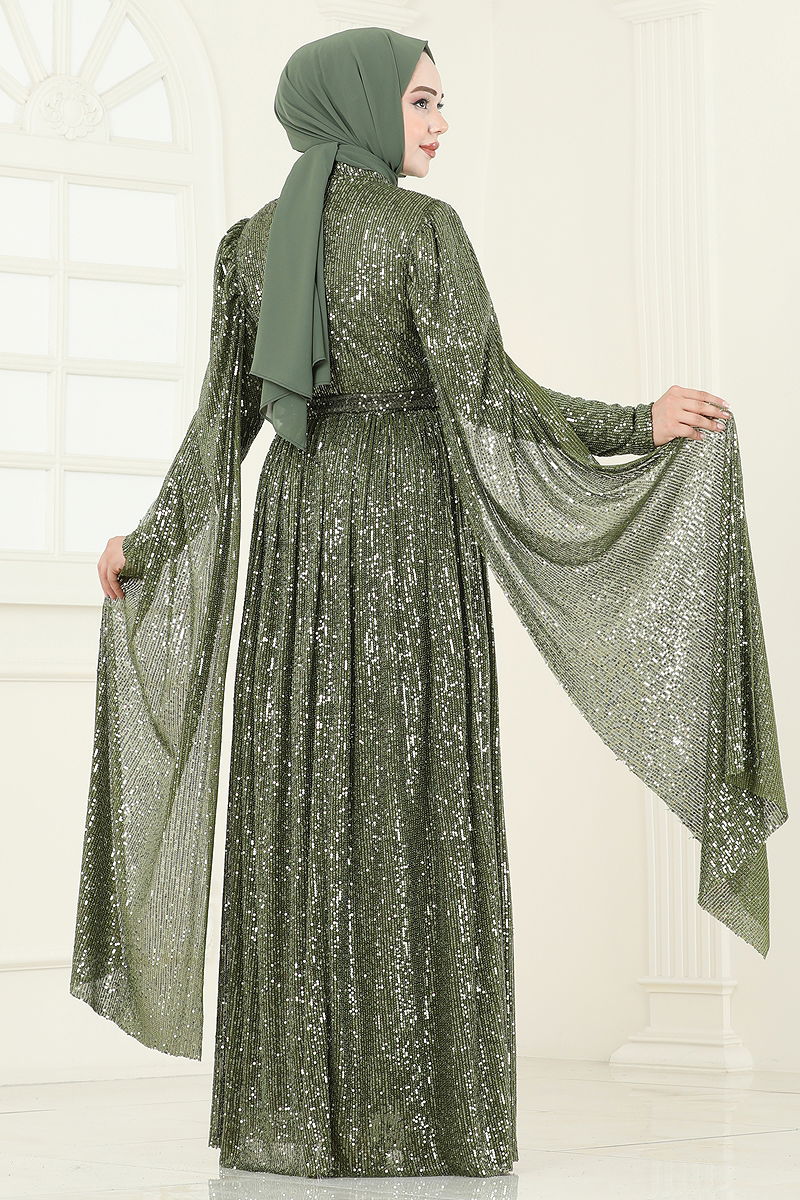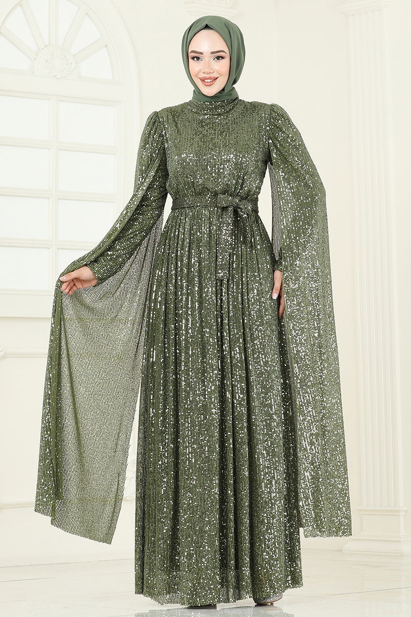 Product Feature : It is a new season hijab fashion product. The product has a Cycling collar. It is lined. The product has a zipper at the from the back part. The product has an elastic waistband. Sequin sequin detail is sewn. The cape is sewn to the product. There may be a tonal difference in the product due to concept photo shoots.