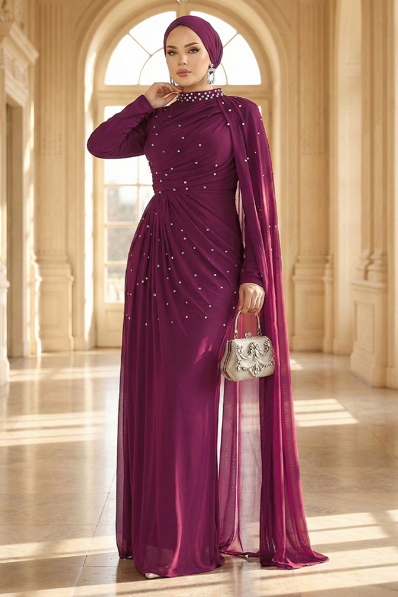 المنتج لديه ياقة بيضوية. مبطنة. المنتج به سحاب في جزء من الخلف. التفاصيل الحجرية محفورة. المنتج يحتوي على حزام خصر مُخاط. يتم خياطة الرداء على المنتج. قد يكون هناك اختلاف في الدرجة اللونية في المنتج بسبب التقاط الصور الفوتوغرافية.