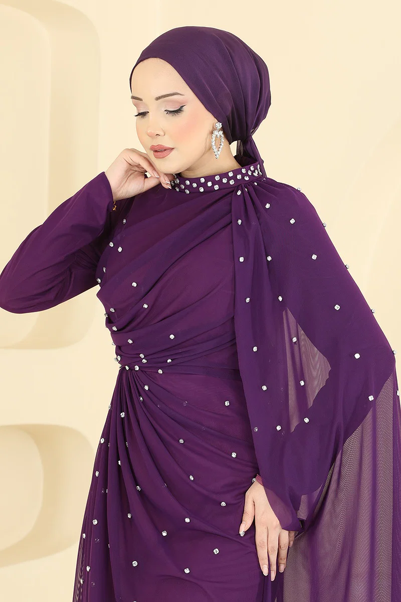 ميزة النسيج : مصنوع من قماش تول مطرز بالخرز من الدرجة الأولى.