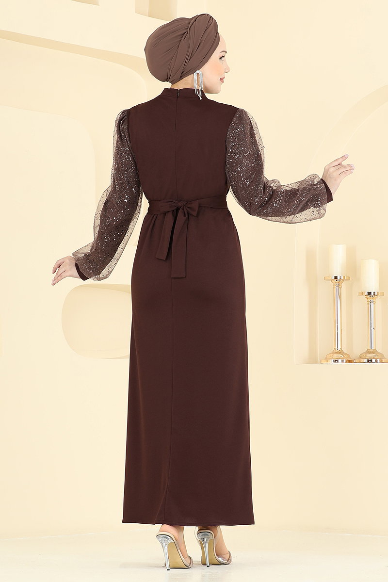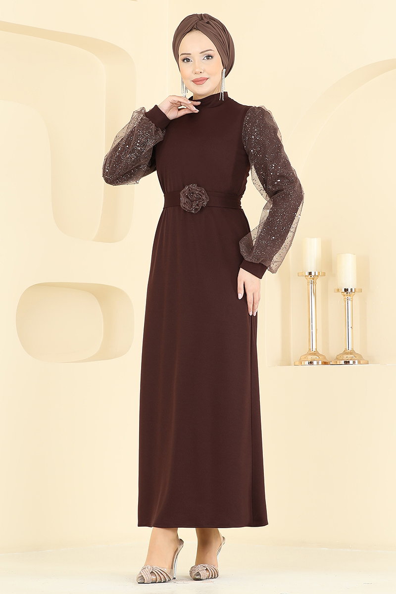 المنتج لديه ياقة دائرية. المنتج به سحاب في جزء من الخلف. الحزام متضمن، ،يمكن استخدامها حسب الرغبة أكمام البالون. قد يكون هناك اختلاف في الدرجة اللونية في المنتج بسبب التقاط الصور الفوتوغرافية.