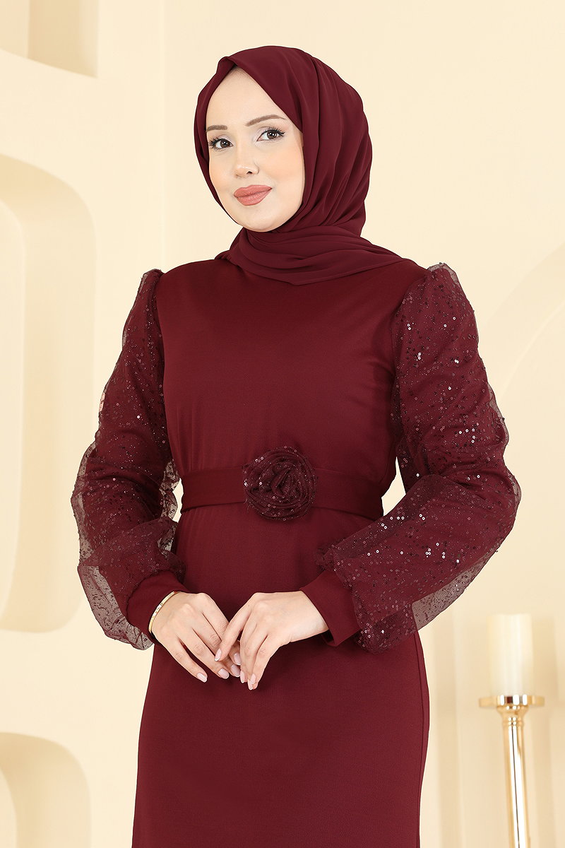 المنتج لديه ياقة دائرية. المنتج به سحاب في جزء من الخلف. الحزام متضمن، ،يمكن استخدامها حسب الرغبة أكمام البالون. قد يكون هناك اختلاف في الدرجة اللونية في المنتج بسبب التقاط الصور الفوتوغرافية.