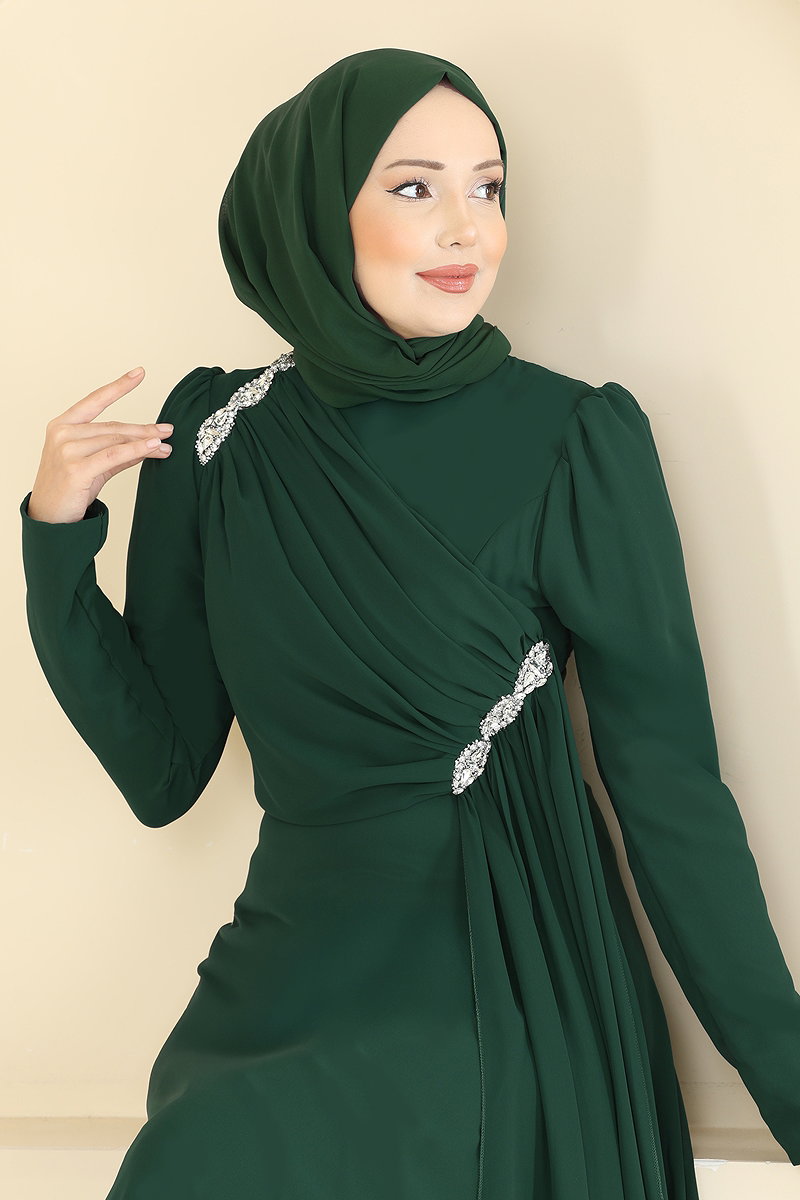 المنتج لديه ياقة مستقيم. مبطنة. المنتج به سحاب في جزء من الخلف. يتم لصق الحجارة. تفاصيل الشيفون مخيطة. قد يكون هناك اختلاف في الدرجة اللونية في المنتج بسبب التقاط الصور الفوتوغرافية.