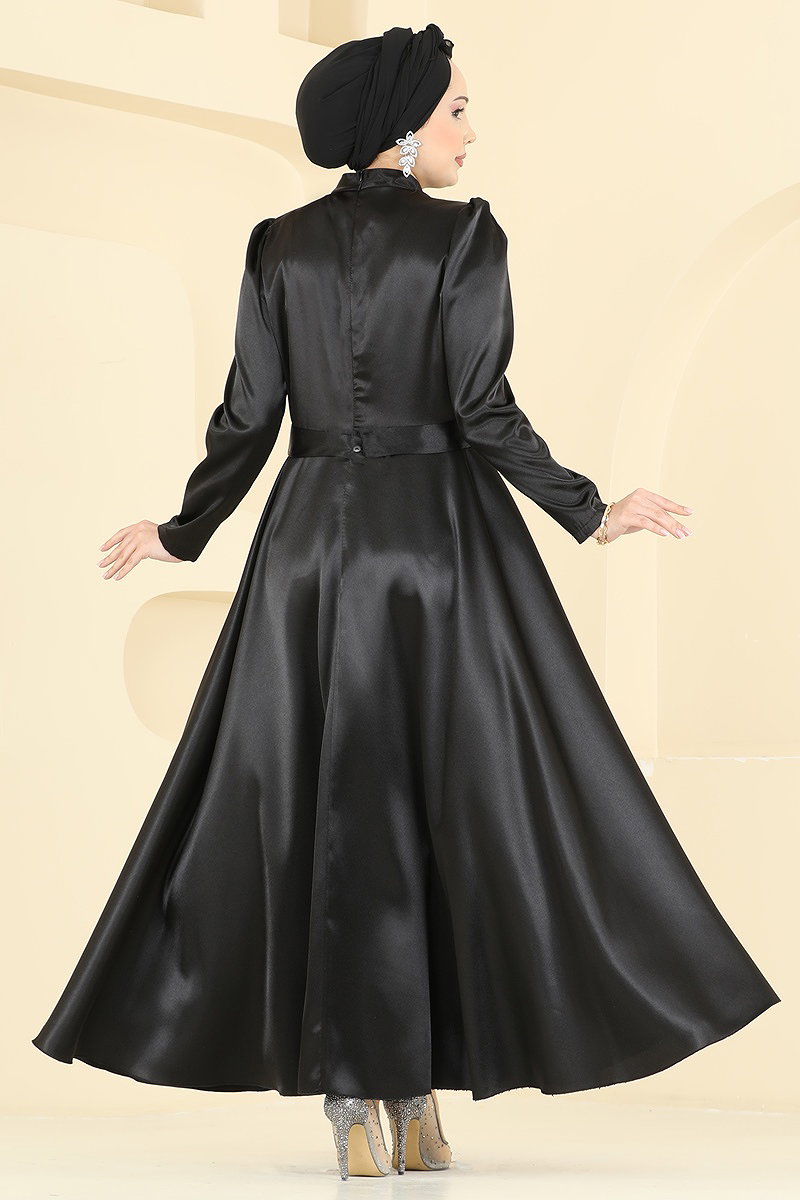 The Shoulder Stoned Satin Dress combines elegance and style in a single design, ideal for wearing in all seasons. This modest evening dress offers practicality with its 30-degree sensitive washing option. Made from satin, the dress features a stand-up collar and a lining-free structure, prioritizing comfort. The zipper at the back makes it easy to wear. Its striking stone details add a dazzling look. The belt is optional; you can use it if you like or remove it according to your preference.