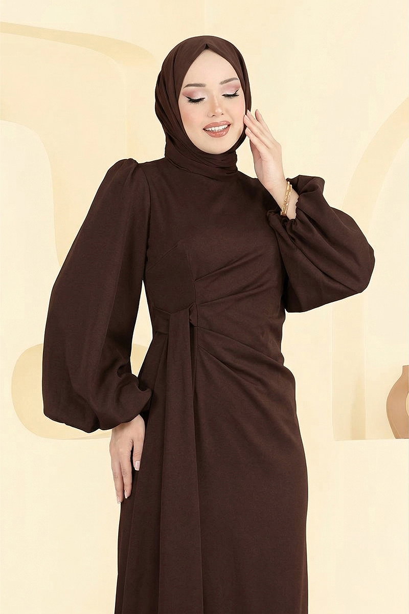يحتوي على حزام يمكن تثبيته من الجانب. المنتج لديه ياقة دائرية. غير مبطنة. المنتج به سحاب في جزء من الخلف. التنورة تحتوي من الاسفل على شراشيب يتم خياطة الحزام على المنتج. أكمام البالون. قد يكون هناك اختلاف في الدرجة اللونية في المنتج بسبب التقاط الصور الفوتوغرافية.