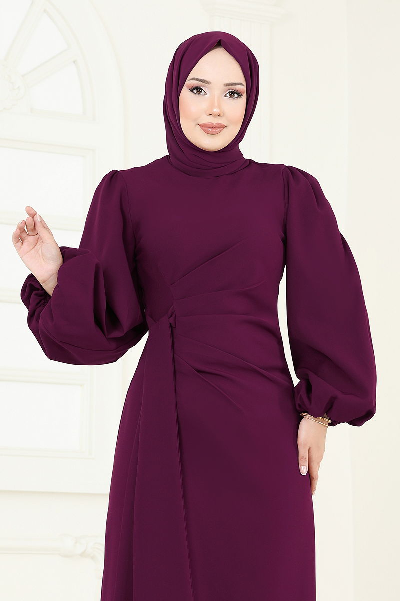 يحتوي على حزام يمكن تثبيته من الجانب. المنتج لديه ياقة دائرية. غير مبطنة. المنتج به سحاب في جزء من الخلف. التنورة تحتوي من الاسفل على شراشيب يتم خياطة الحزام على المنتج. أكمام البالون. قد يكون هناك اختلاف في الدرجة اللونية في المنتج بسبب التقاط الصور الفوتوغرافية.