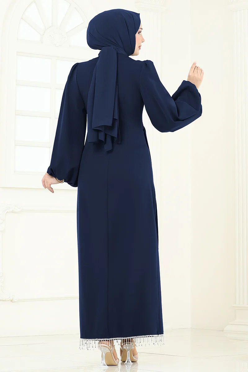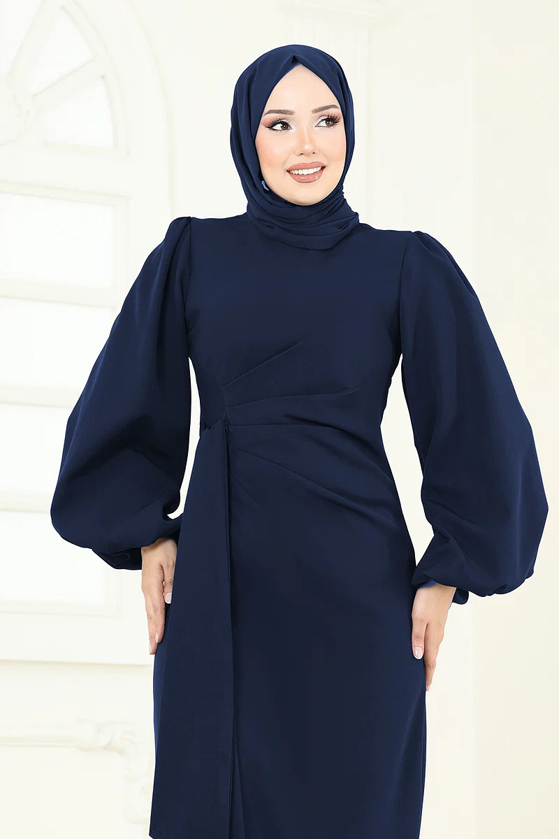 Product Feature : It is a new season hijab fashion product. It has a belt that can be fastened from the side. The product has a Cycling collar. Unlined. The product has a zipper at the from the back part. Stone details are erected. Belt is sewn to the product. Balloon sleeves. There may be a tonal difference in the product due to concept photo shoots.