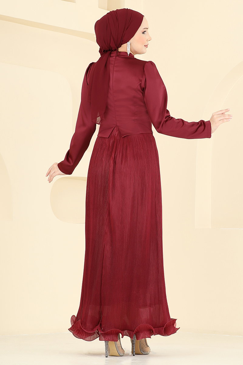 Elegant and meticulously designed, the Flowing Pleated Chic Abaya is a modest dress suitable for all seasons. Crafted from a combination of satin and sparkling fabric, it offers a visually appealing look. Its straight collar and zip-back design create a modern and sophisticated silhouette, while the lined structure with stick-on stones highlights elegance. The ruffled edges of the skirt add a dynamic touch. This special design requires dry cleaning only.