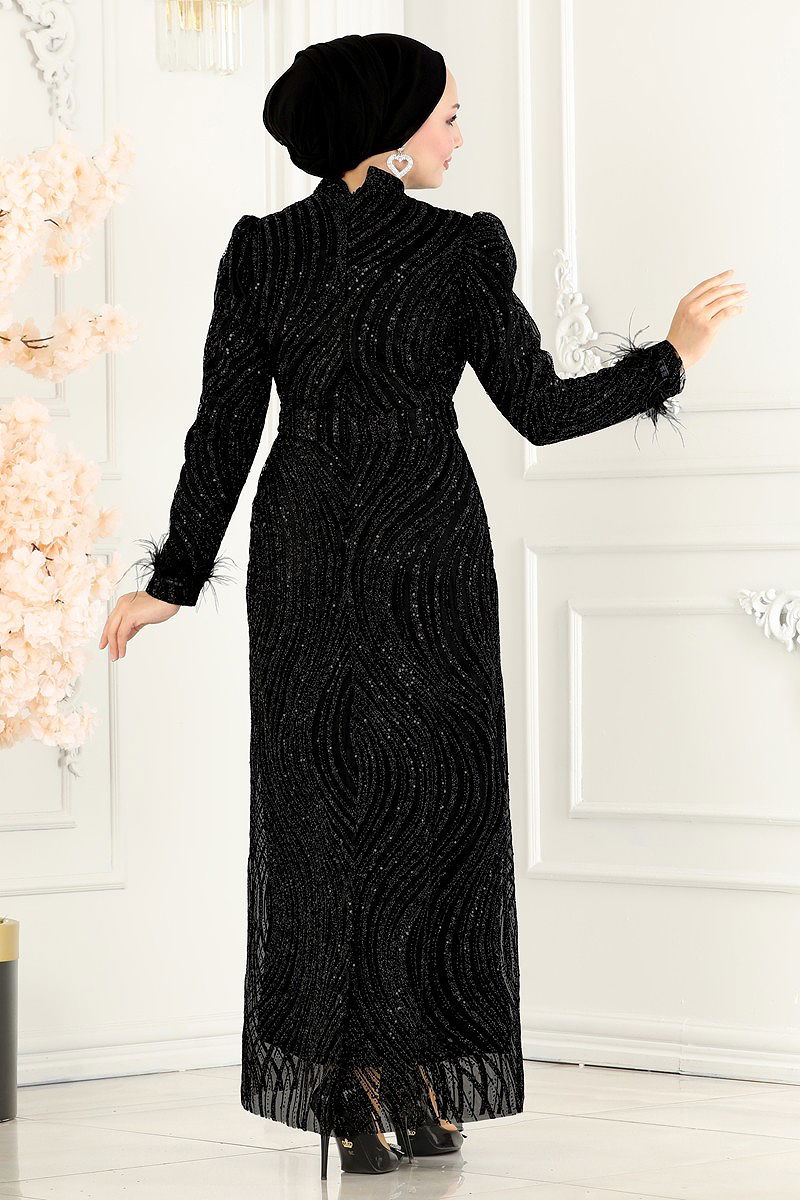 The Otriş Detailed Pencil Evening Dress combines elegance and comfort for a dazzling look on your special days. Suitable for all seasons, this modest evening dress is made from sparkly tulle fabric and is lined. It features a mandarin collar, a back zipper, and is prone to shedding from its dense glitter details. It is recommended to be cleaned by dry cleaning, and its durable structure offers long-lasting use. The attached Otriş feathers add an aesthetic touch. The product displayed is in size 38.