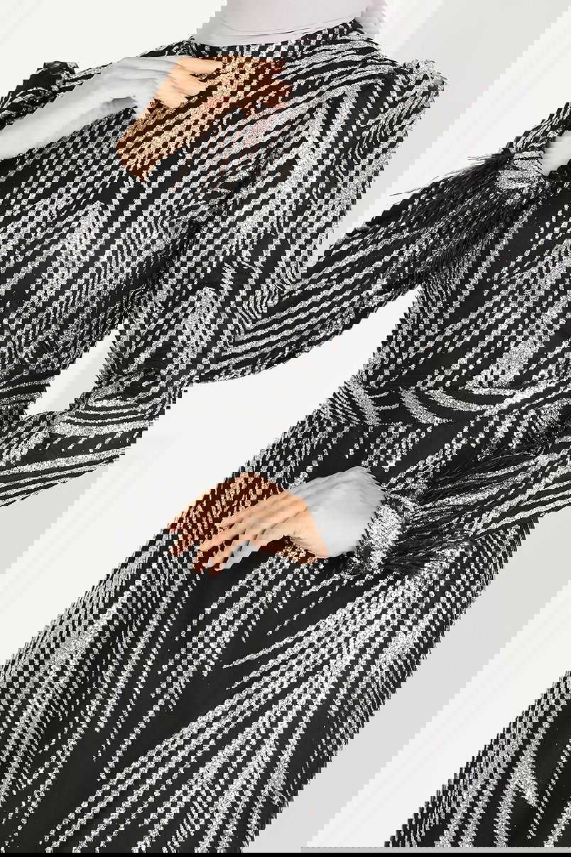 المنتج لديه ياقة نصف بيضوية. مبطنة.. المنتج به سحاب في جزء من الخلف. يتم خياطة ريش الأوتريش في المنتج. الحزام مخيط. قد يكون هناك اختلاف في الدرجة اللونية في المنتج بسبب التقاط الصور الفوتوغرافية.