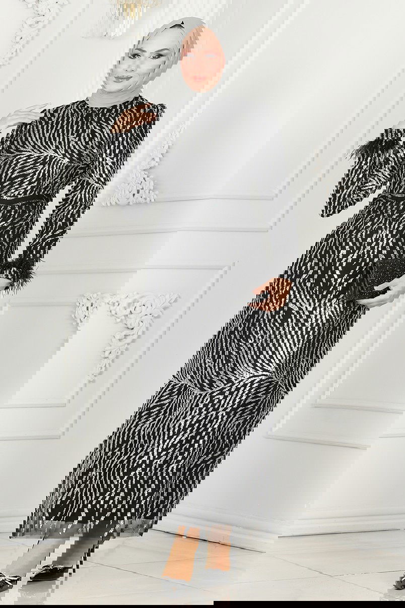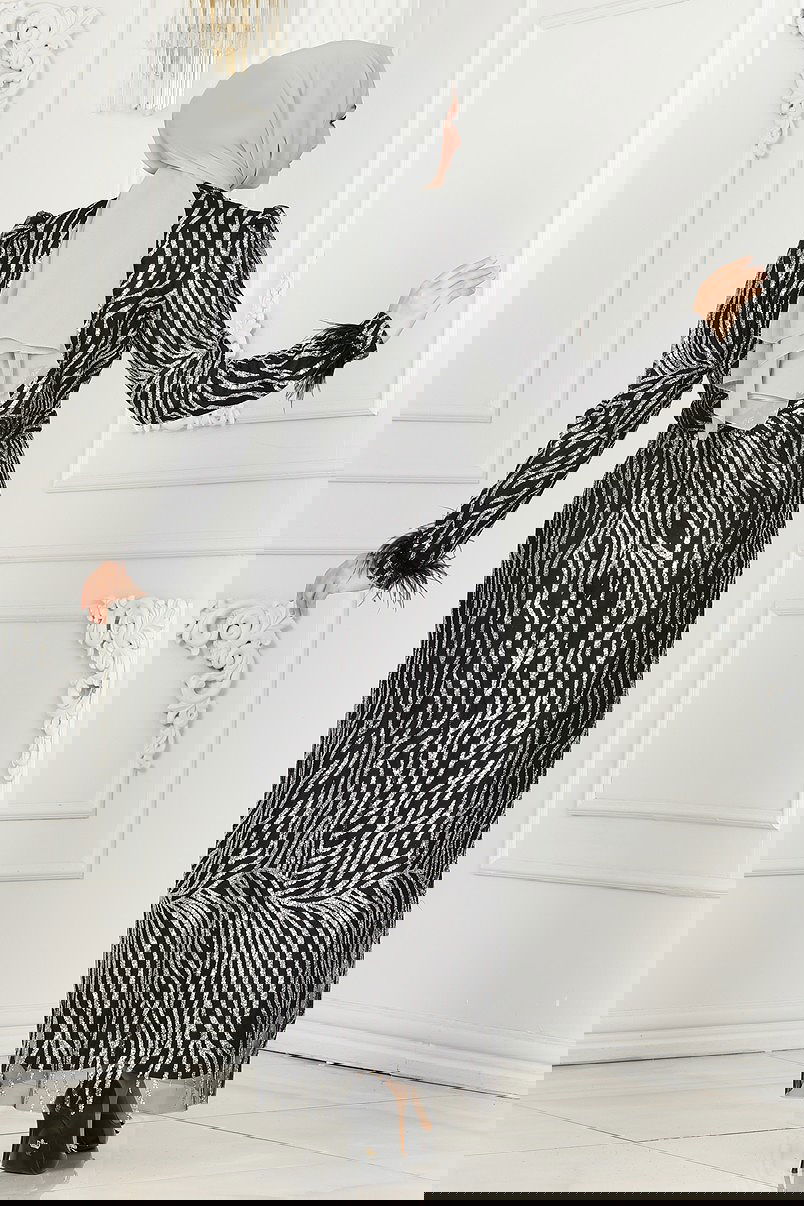 فستان سهرة أسود وفضي