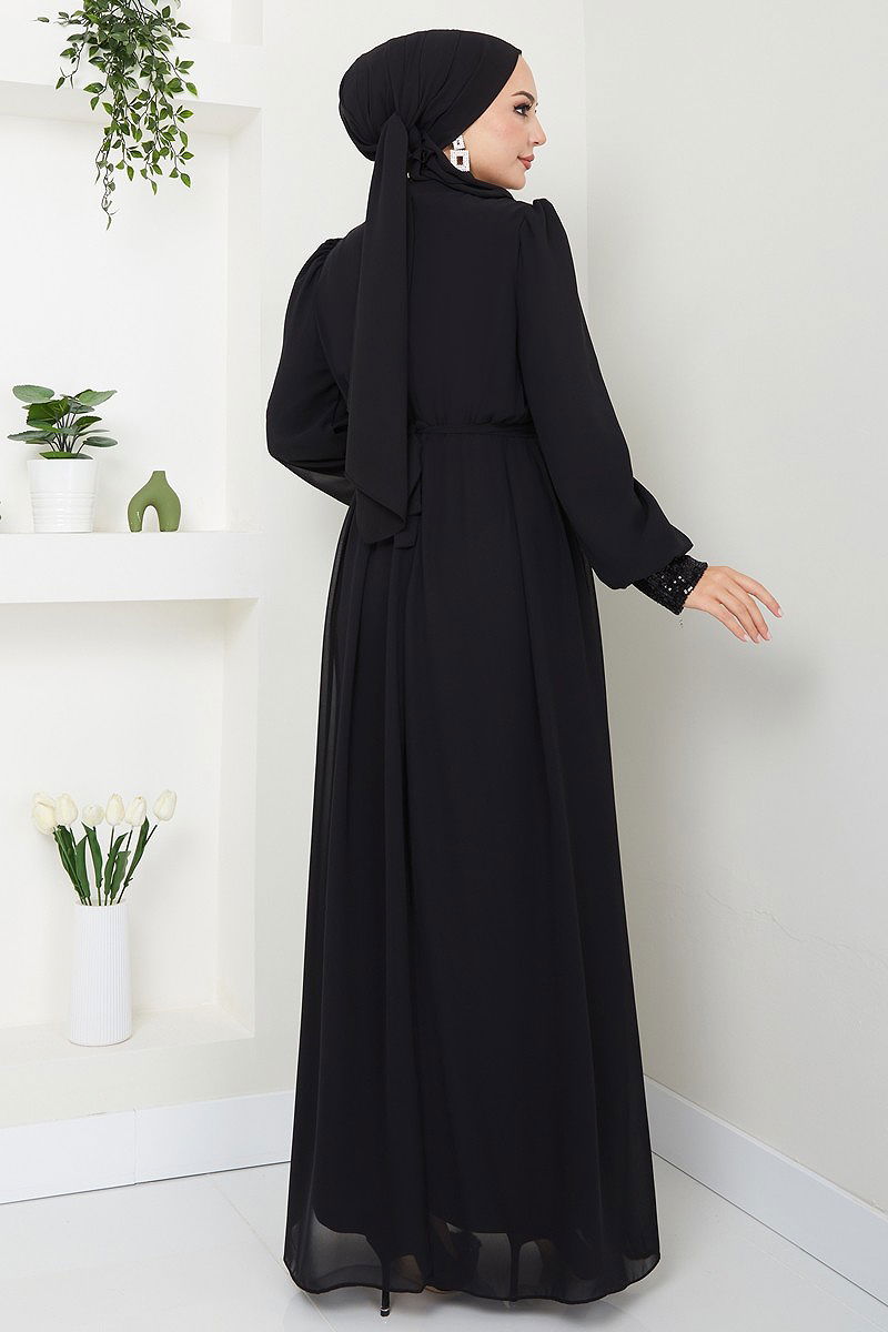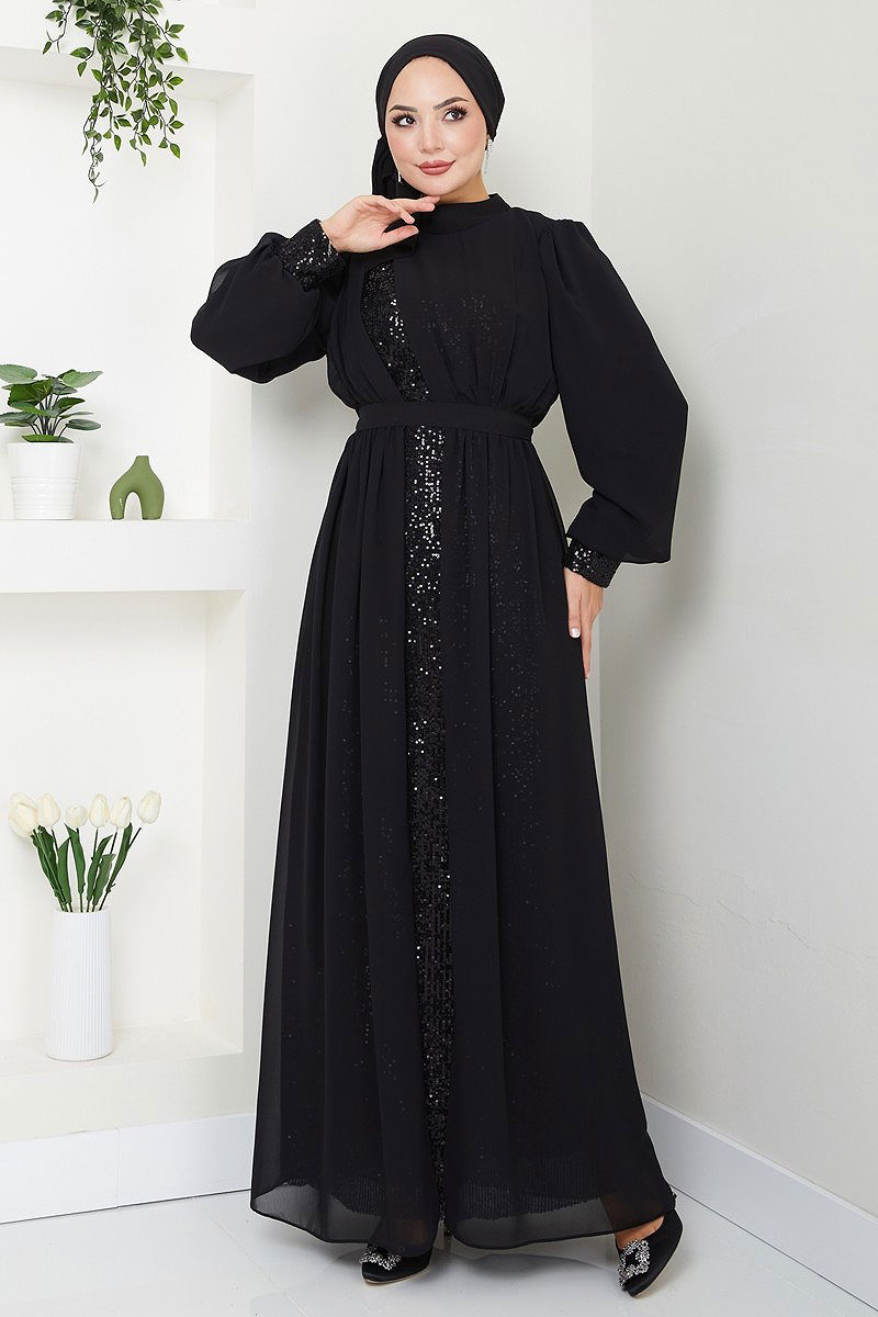 المنتج لديه ياقة نصف بيضوية. مبطنة.. المنتج به سحاب في جزء من الخلف. تفاصيل الترتر اللامع تم خياطته الحزام متضمن، ،يمكن استخدامها حسب الرغبة قد يكون هناك اختلاف في الدرجة اللونية في المنتج بسبب التقاط الصور الفوتوغرافية.