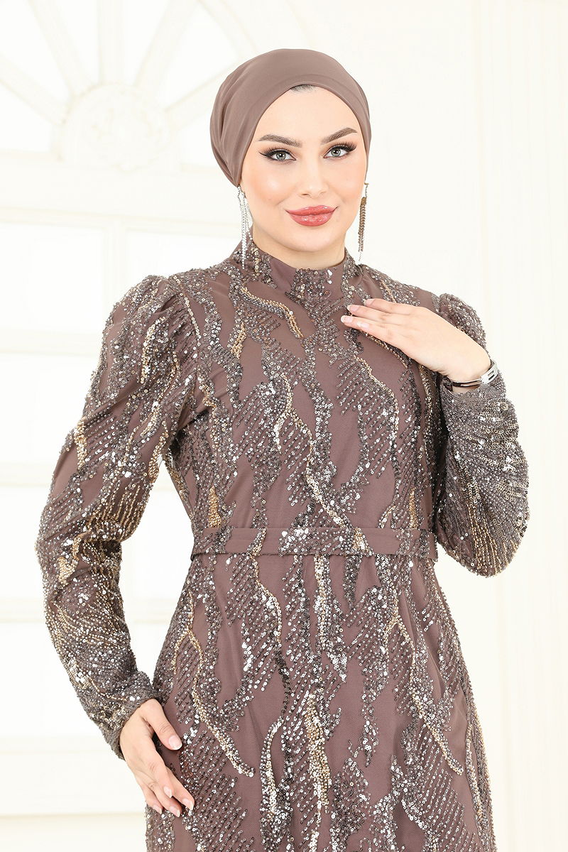The SUAL Beaded Evening Dress is an elegant choice with its modesty features, suitable for all seasons. This dress, which must be dry cleaned only, is made from tulle fabric and is lined. It features a stand-up collar and a zipper at the back, offering a modern look. The size of the product is 38, and the bead details provide an eye-catching touch.