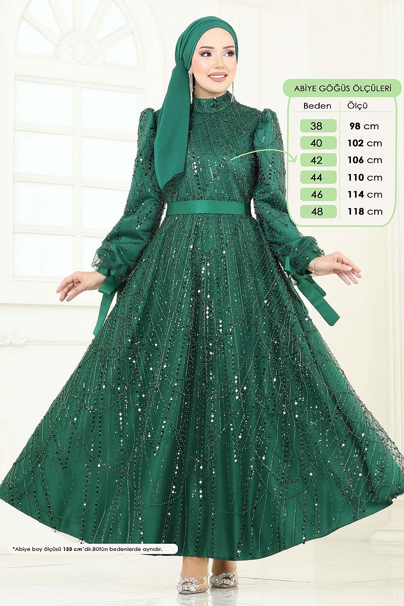 Product Feature : It is a new season hijab fashion product. The product has a Judge collar. It is lined. The product has a zipper at the from the back part. The sequin detail is sewn. The product has a stitched waistband. Bead details are printed. Belt included, optional not available. The cuff is laced. There may be a tonal difference in the product due to concept photo shoots.