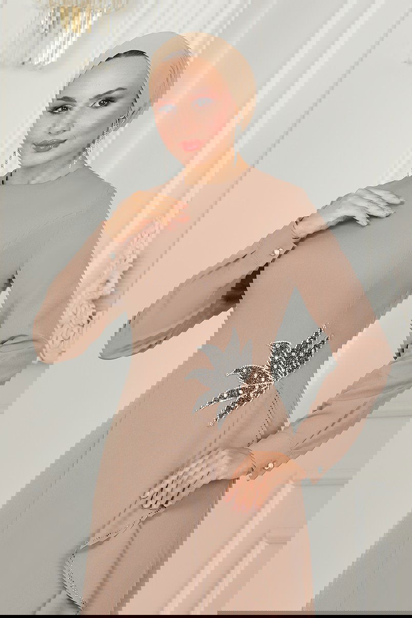 Product Feature : It is a new season hijab fashion product. The product has a Cycling collar. The product has frills at the Skirt part. It has a slash.. Unlined. The stones are glued. There may be a tonal difference in the product due to concept photo shoots.