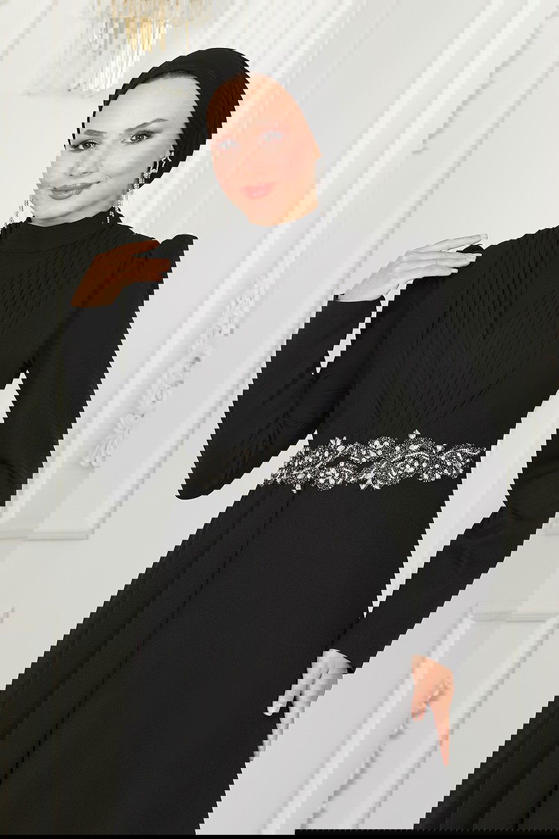 Product Feature : It is a new season hijab fashion product. The dress has buttons on the back. The sweater is worn over the head. The product has a Half Judge collar. Unlined.. The stones are glued. There may be a tonal difference in the product due to concept photo shoots.
