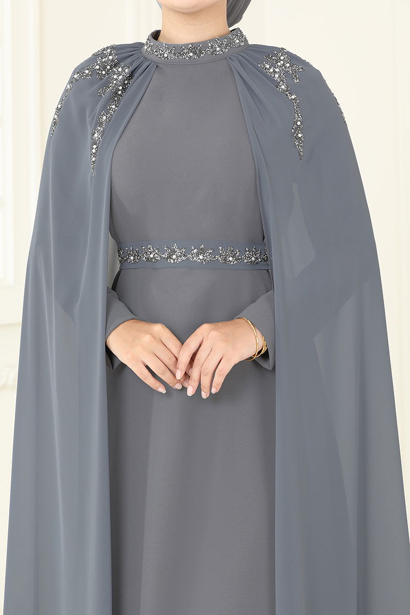 فستان سهرة رمادي غامق