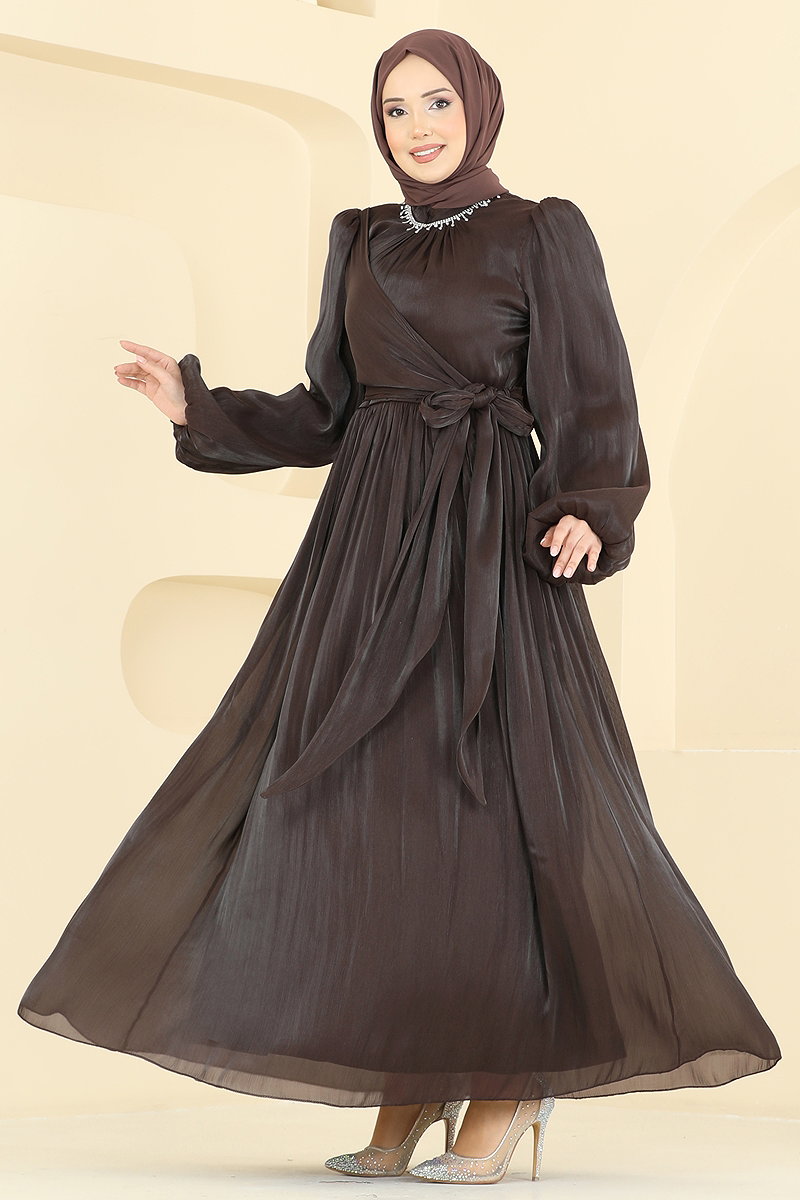 The perfect harmony of elegance and style: Sparkling Evening Dress with Stone Details! This special design is ideal for dazzling at any special occasion throughout all seasons. Its soft and sparkling fabric prioritizes comfort while stone details offer a stunning look. With a washing instruction for durability, this product features a commanding collar and a lined structure for complete elegance. Its hidden back zipper and stitched belt provide practical use, while the elastic detail at the cuffs ensures a comfortable fit. Suitable for every size, it will become an essential part of your wardrobe.
