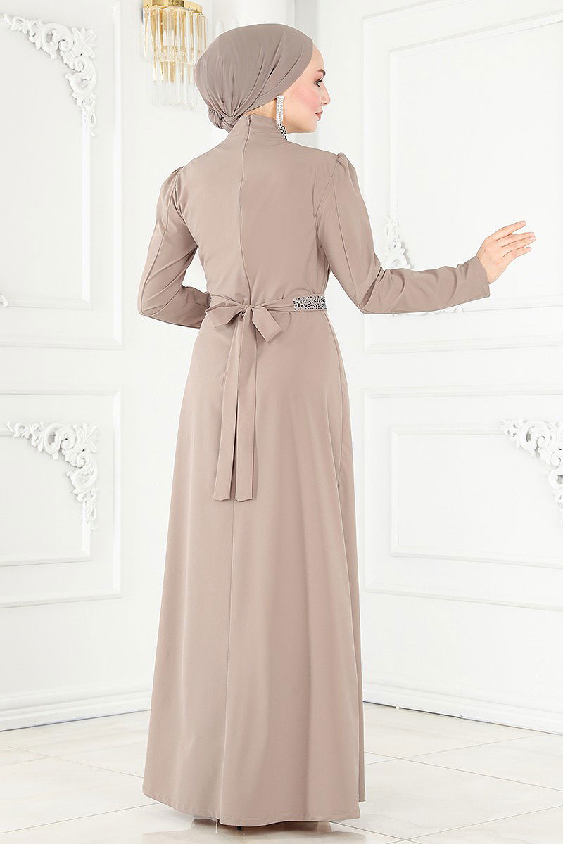 Product Feature : It is a new season hijab fashion product. The product has a Judge collar. Unlined. The product has a zipper at the from the back part. Belt included, optional not available. The stones are glued. There may be a tonal difference in the product due to concept photo shoots.