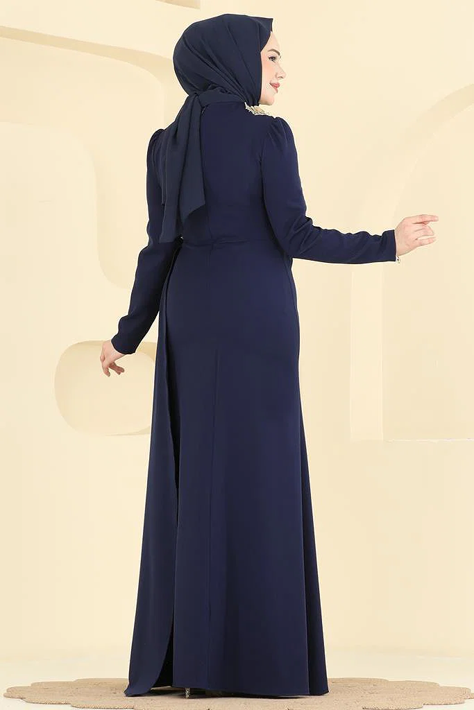 The Embroidered Dabıl Evening Dress offers an elegant option suitable for modest fashion. You can comfortably wear this special design throughout all seasons, as it can be washed gently at 30 degrees. Made from durable Dabıl fabric, this product features a crew neck design and is unlined for comfort. The zipper at the back makes it easy to wear, while the embroidered details add a stylish look to the garment. The product showcased is a size 38.
